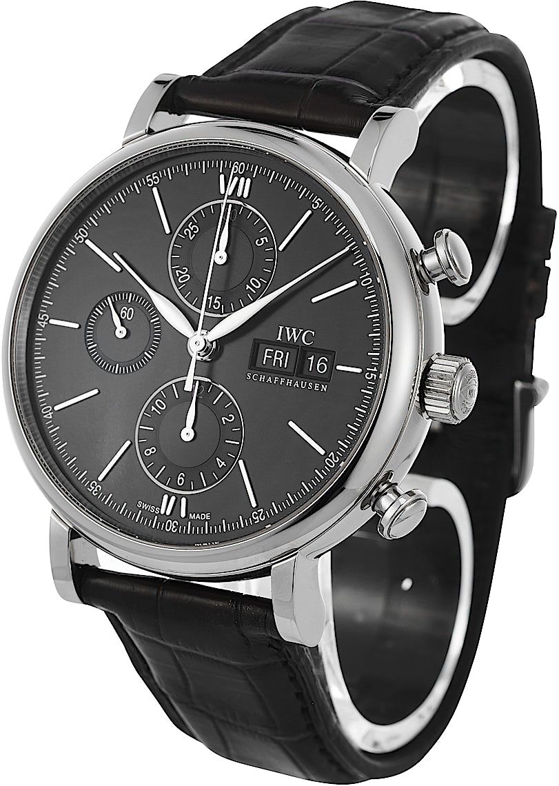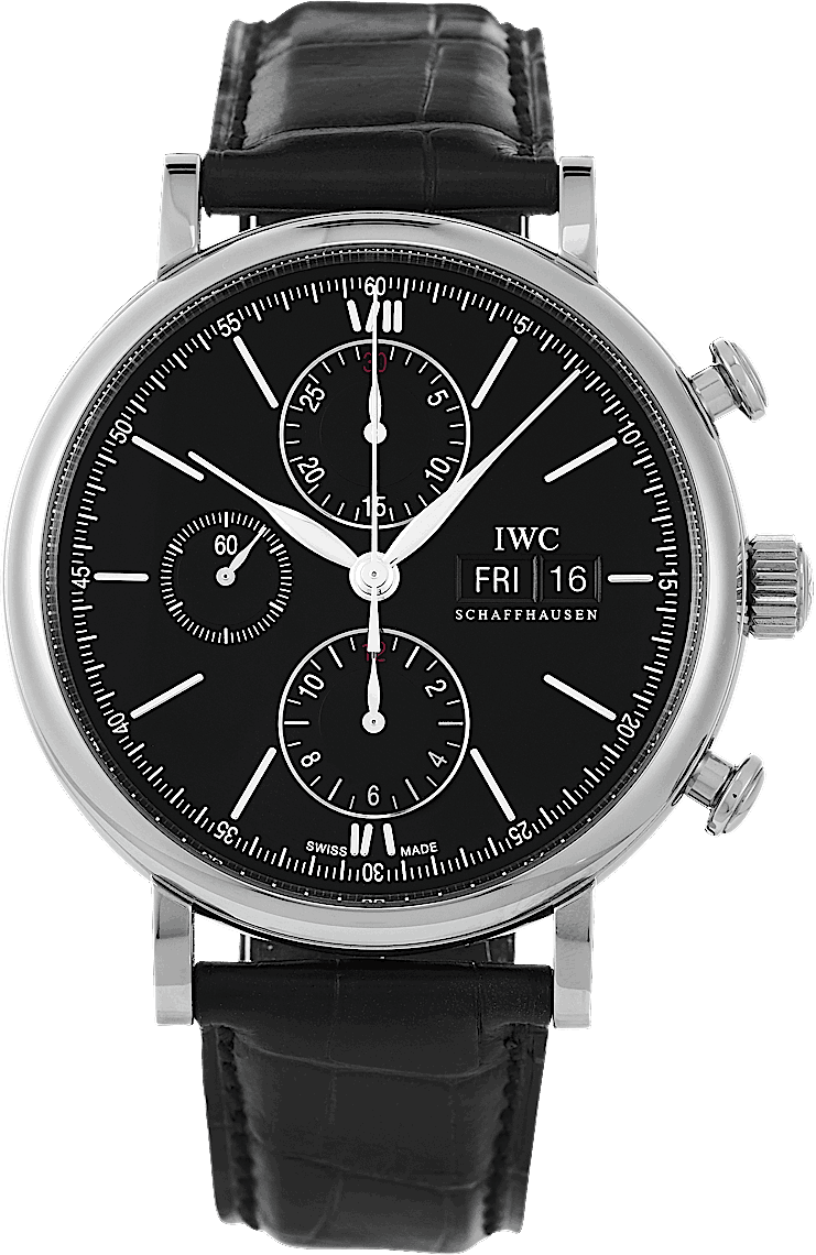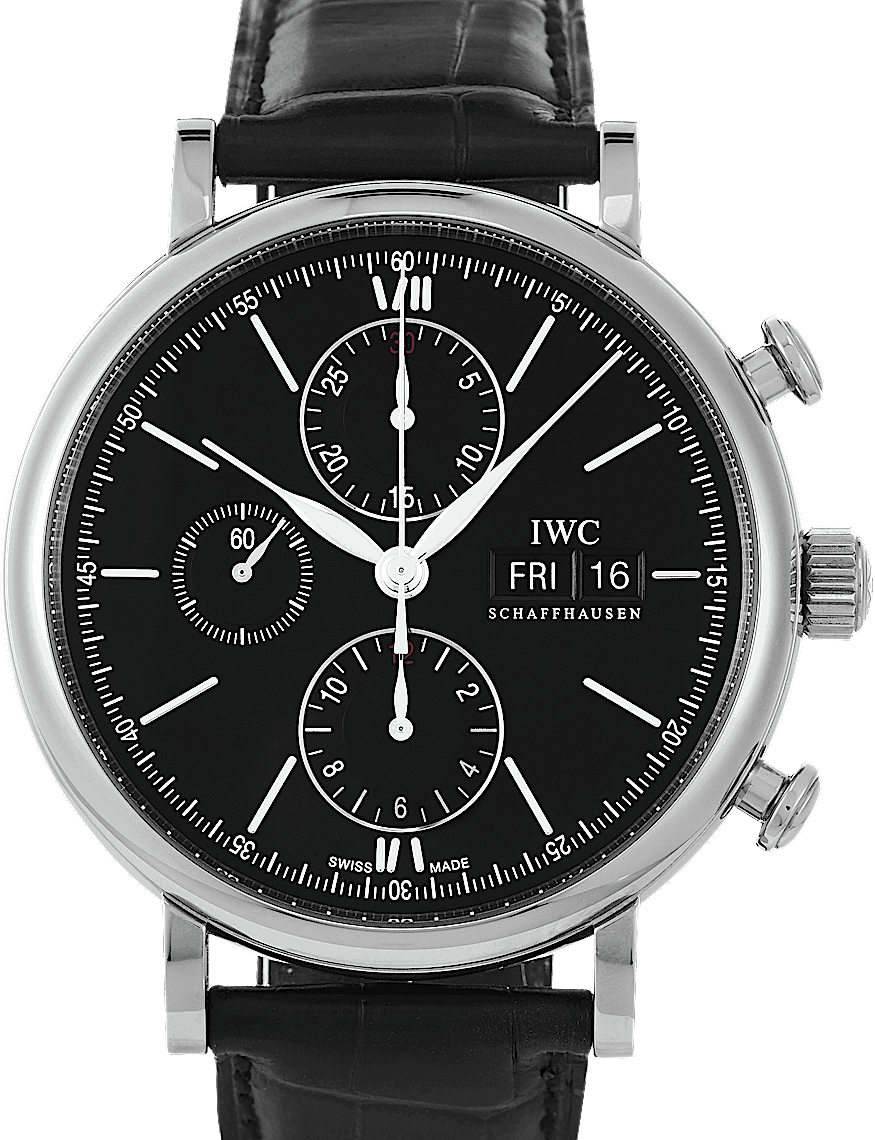 IWC Portofino Chronograph, Reference: IW391029, Gender: Male, Size: 42mm, Dial color: Black, Strap material: Alligator Leather, Movement: Automatic, Year: 2025, Condition: New and unworn. An inspection by our certified watchmakers guarantees authenticity., Documents: Original papers, CHRONEXT Certificate