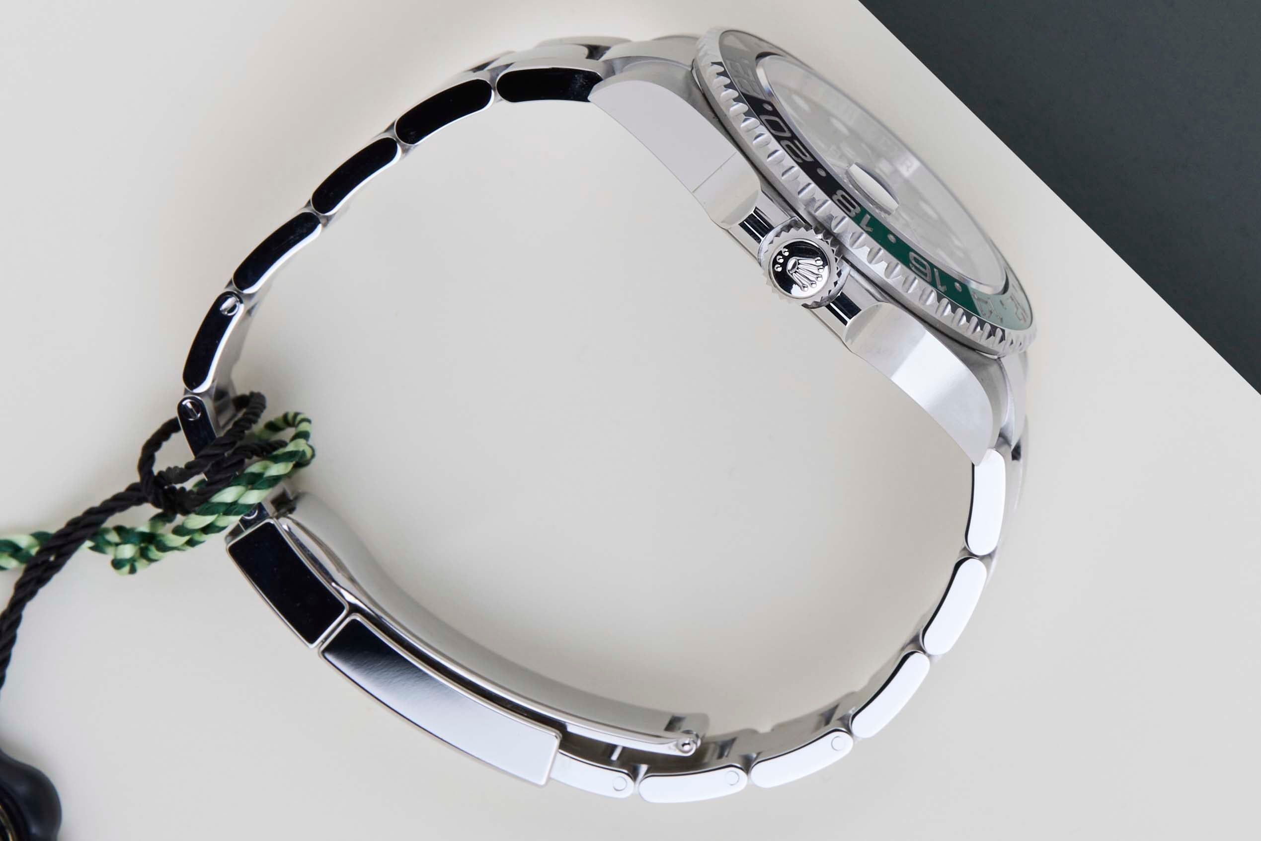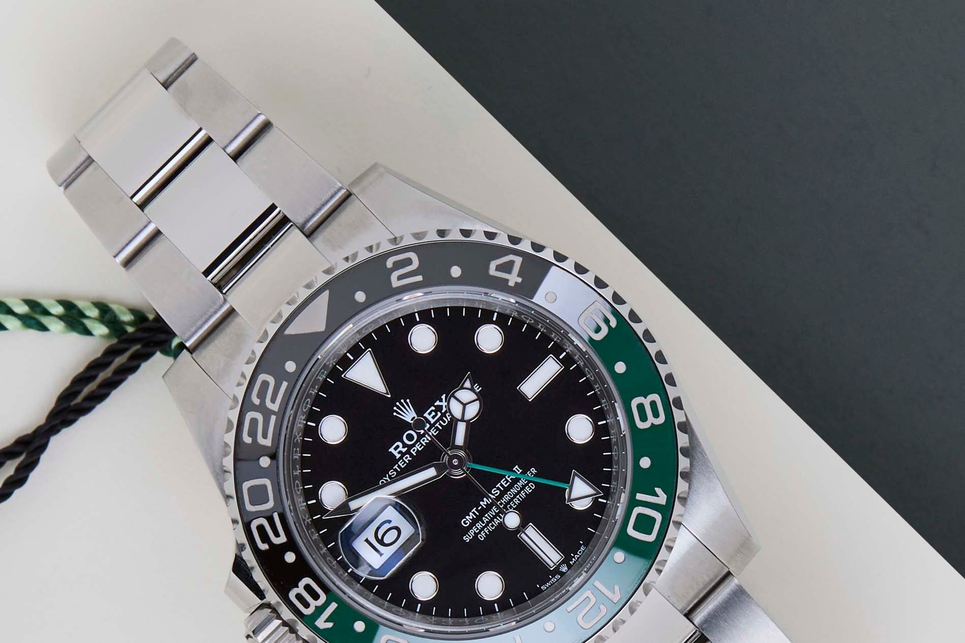 New & Unworn | Full Set | International Rolex Warranty until July 2030The Rolex GMT was originally designed in collaboration with Pan American Airways and issued to their crews on long-haul flights. The dual time zone can track local and home time, which is a useful tool for pilots and those who are traveling a lot across different time zones.The reference 126720 is the second generation of the GMT-Master II with a Ceramic Bezel. The material to make this bezel is called 'Cerachrom', which was developed completely in-house by Rolex to be highly scratch-resistant.This GMT is equipped with the Black and Green Bezel, which can be derived from the reference 126720VTNR, Lunette Vert Noir. This GMT-Master is made of stainless steel and is fitted with a Oyster Bracelet, which is equipped with the Easylink. This extension, allows the wearer to either extend or shorten the bracelet by 5 millimeters, improving the wearability and usability of the watch. This Rolex GMT-Master II is in New & Unworn condition and comes with the original Rolex Warranty Card and Box. Furthermore, the watch has International Rolex Warranty Until July 2030.