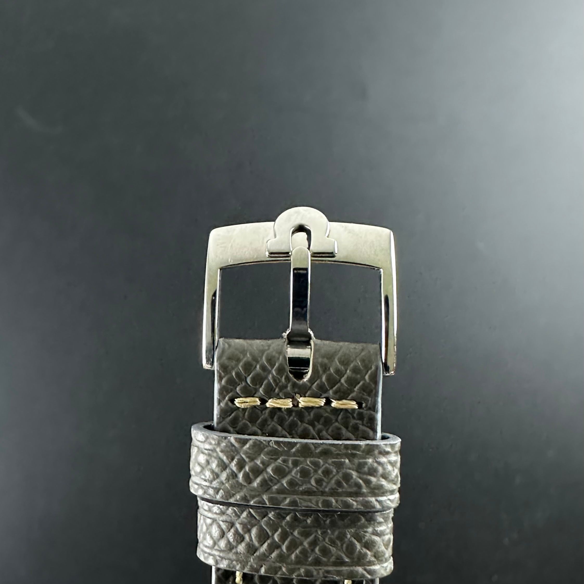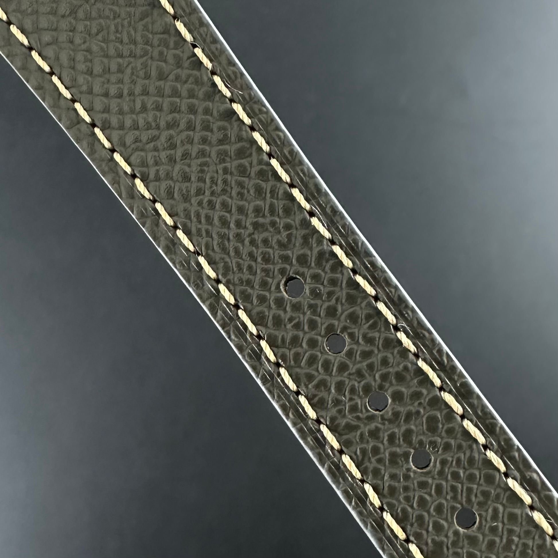 Strap: A grey calf leather strap with off-white stitching. (Fits a 12 to 20cm wrist)