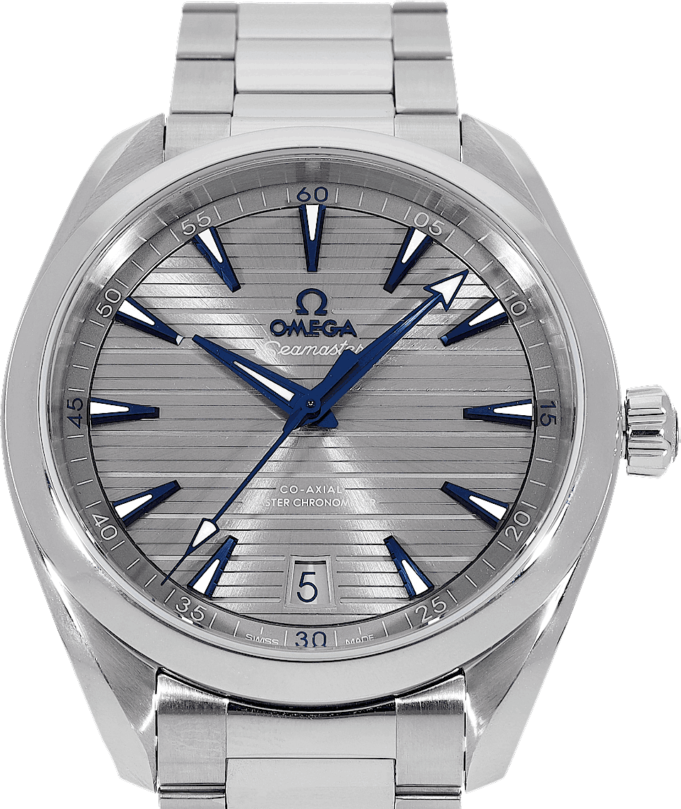 Omega Seamaster Aqua Terra 150 M Co-Axial Master Chronometer, Reference: 220.10.41.21.06.001, Gender: Male, Size: 40mm, Dial color: Grey, Strap material: Stainless Steel, Movement: Automatic, Year: 2021, Condition: Previously worn, minor to no signs of usage. The movement is flawless and the case has been cleaned. watch tested ensure full functionality. An inspection by our certified watchmakers guarantees its authenticity., Documents: Original papers, CHRONEXT Certificate