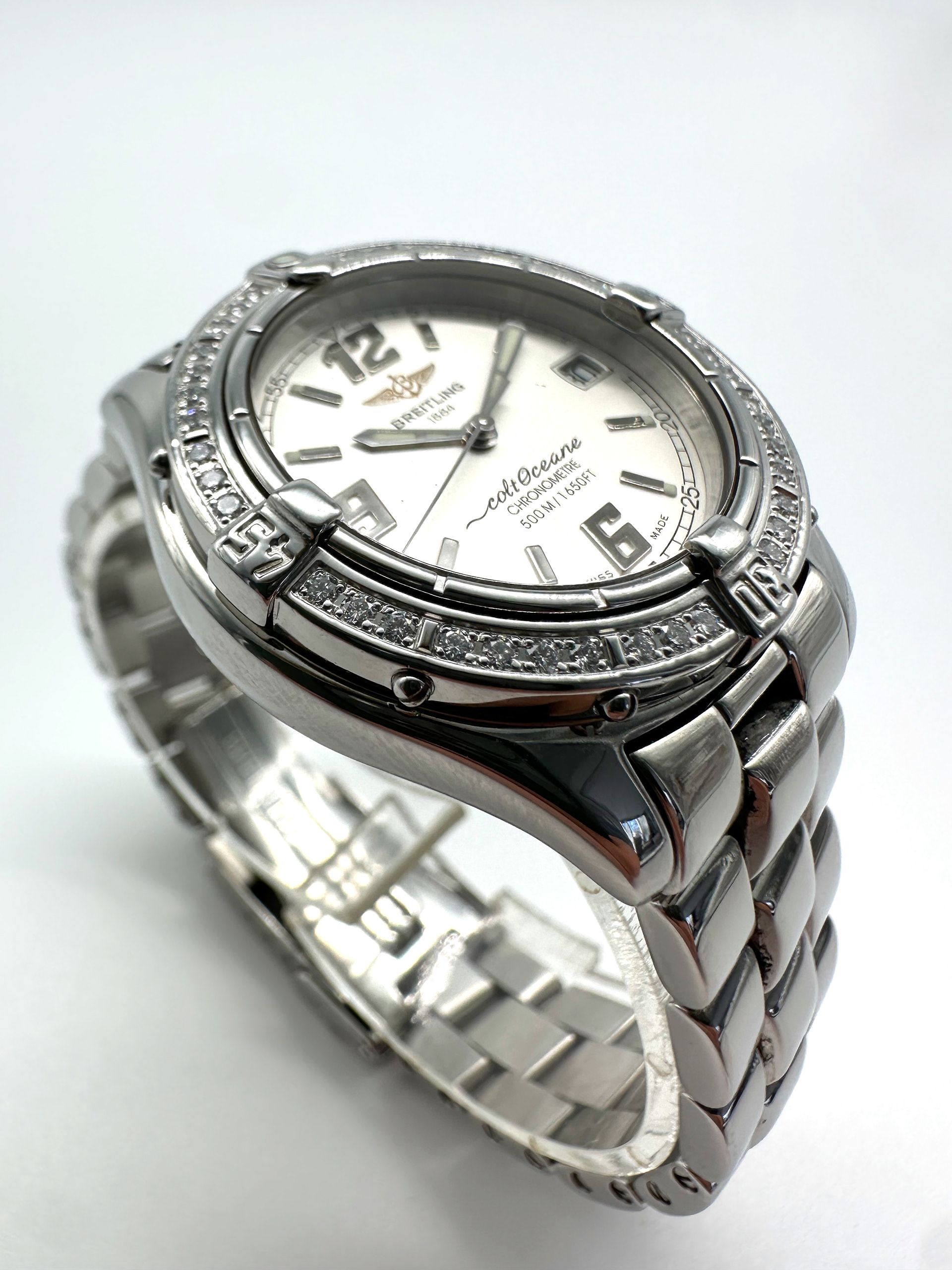 Breitling werd in 1884 door Leon Breitling opgericht en stond al snel bekend om hun precisiechronografen en instrumenten voor professionals. Vele modellen zijn ontwikkeld voor de luchtvaart of zoals deze Colt Oceane voor duikers.