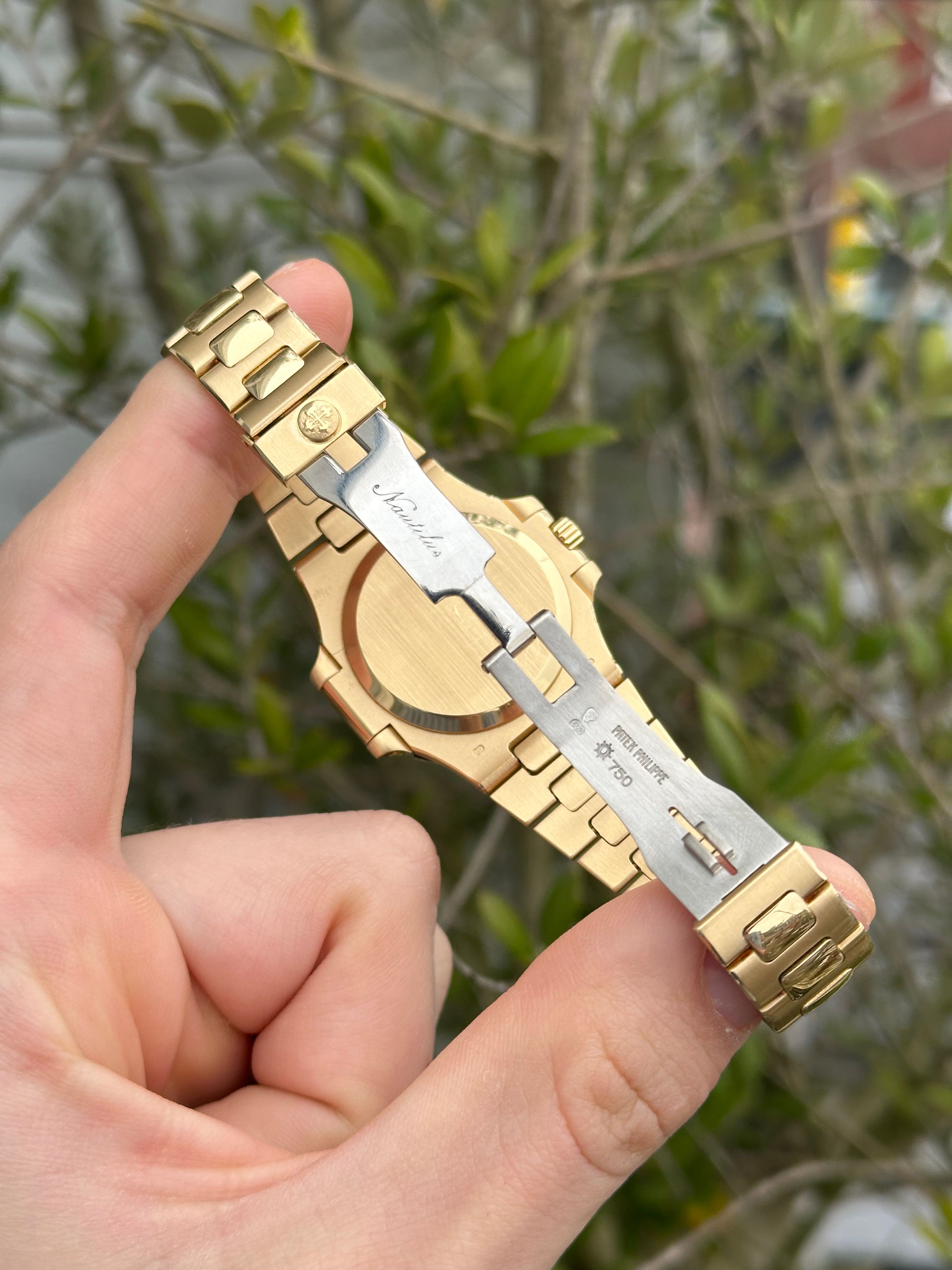 Het horloge is oorspronkelijk geleverd met een witte wijzerplaat. Later is een correcte blauwe wijzerplaat hierin geplaatst. De witte wijzerplaat is aanwezig. Het horloge komt met doos en Extract of the Archives van Patek Philippe en extra schakels. De staat van de Nautilus is zeer goed. Meer foto's van het horloge en toebehoren zijn onderweg.