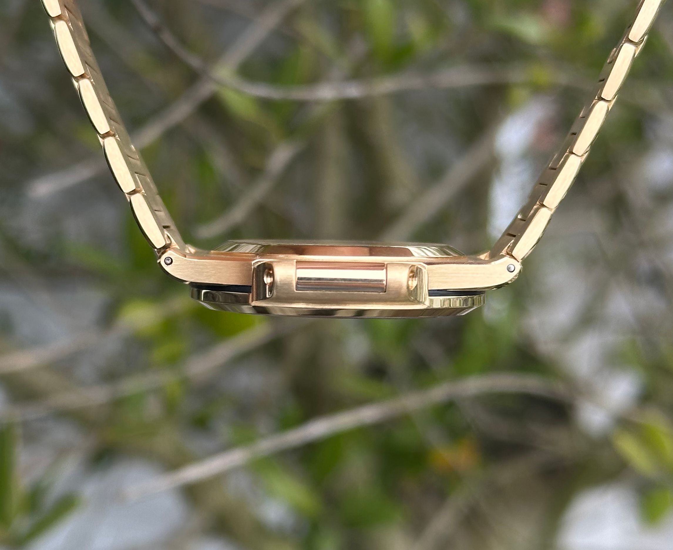 De zeer dunne kast komt voort uit de monobloc constructie van Patek Philippe. Er zit geen afneembare deksel op het horloge. Het horloge wordt gedemonteerd door onder andere de schroeven bij de 'oren' van de kast te verwijderen.