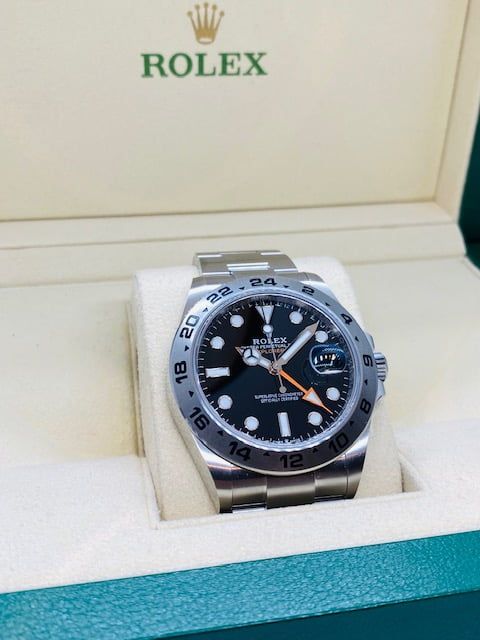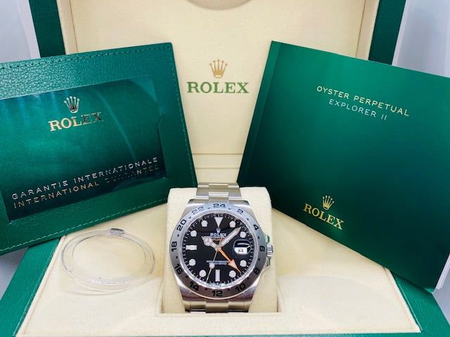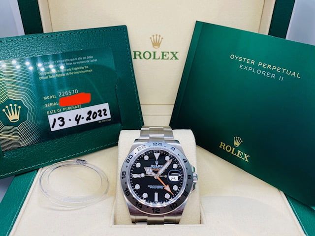 Rolex Explorer Ii Black Dial 42mm 226570 – New 2022. Beautiful black dial in a 42 mm steel case with steel bezel. You are welcome in our shop Juwelier Emo, Utrecht. For questions you can contact us. All shipping on request. To avoid any misunderstanding regarding scratches etc, please view carefully all images of the watch you're interested in. Ask for more photos if necessary. When mentioned good, great, excellent condition, does not always mean no scratches! All watches are 100% original. All watches exceeded factory warranty are delivered with a six month warranty on the movement