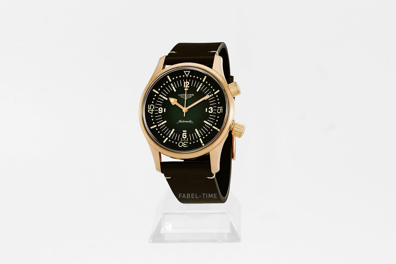 LONGINES LEGEND DIVER BRONZE L37741502 Automatik 42 mm Gehäuseboden aus Bronze mit Titan grün, braunes Lederarmband L3.774.1.50.2