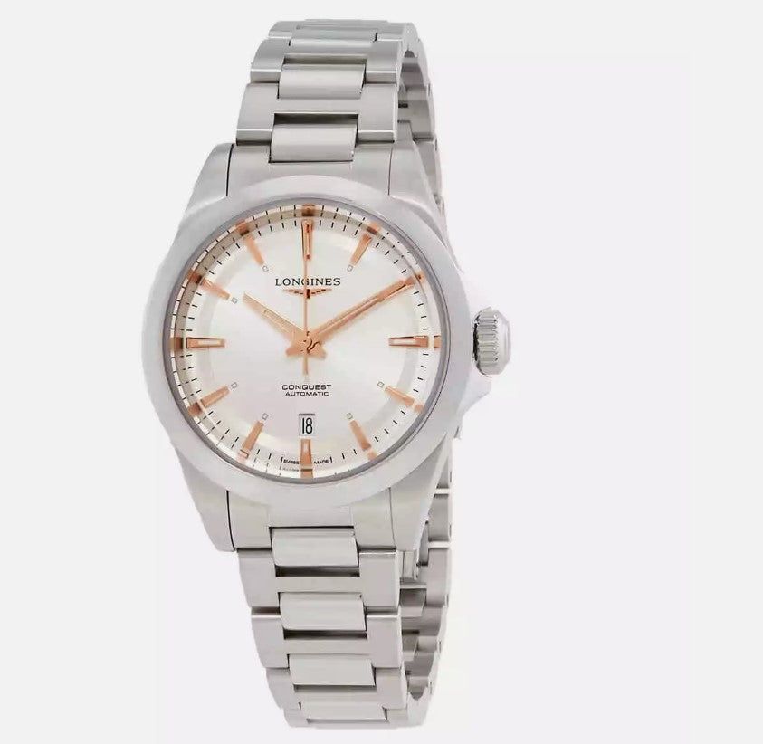 Longines Conquest L33204726 Edelstahl 30mm, Silber mit "Sonnenstrahl" Dekor
