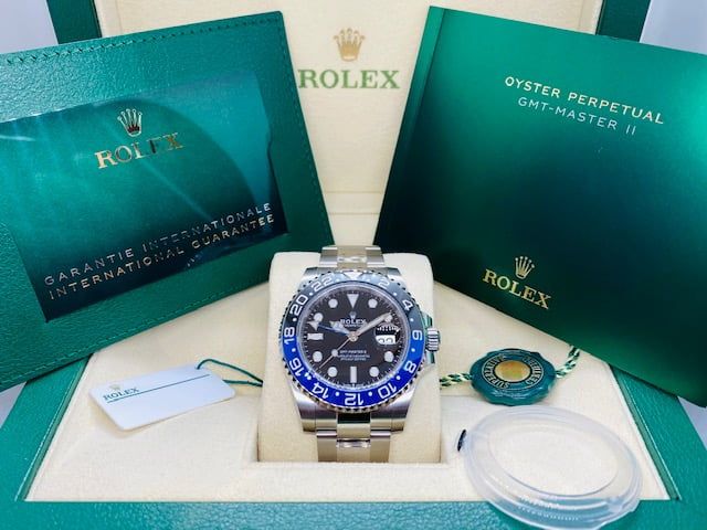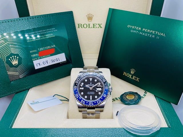 Rolex Gmt-Master Ii 126710Blnr Batman Oyster – New 2021. Beautiful black dial in a 40 mm steel case with steel bezel. You are welcome in our shop Juwelier Emo, Utrecht. For questions you can contact us. All shipping on request. To avoid any misunderstanding regarding scratches etc, please view carefully all images of the watch you're interested in. Ask for more photos if necessary. When mentioned good, great, excellent condition, does not always mean no scratches! All watches are 100% original. All watches exceeded factory warranty are delivered with a six month warranty on the movement