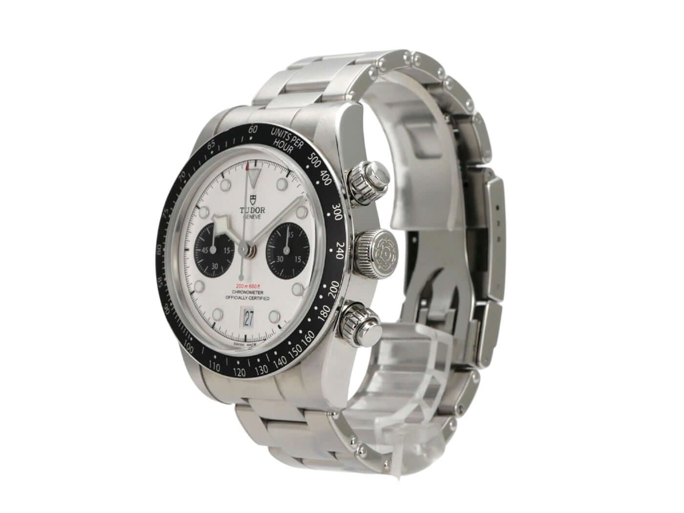 Case made of polished and satin-finished stainless steel, case diameter 41 mm, case height 12.7 mm, stainless steel bezel with 60-minute scale and luminous dot, unidirectional rotating, stainless steel bracelet with folding clasp, opal-colored dial with applied luminous indices, black subdials, luminous hands, automatic movement, Tudor manufacture caliber MT5813, 70 hours power reserve, chronograph, date, chronometer, sapphire crystal, screw-down crown, screwed and engraved stainless steel case back, water-resistant up to 20 bar.