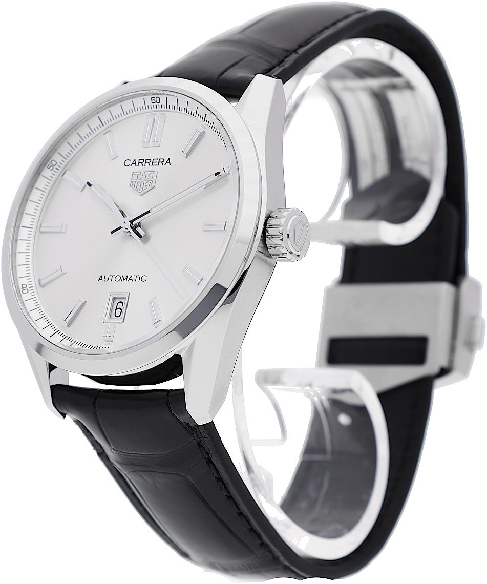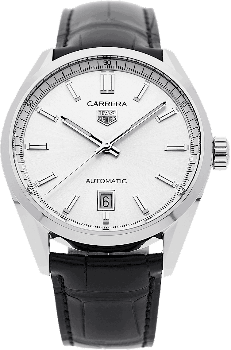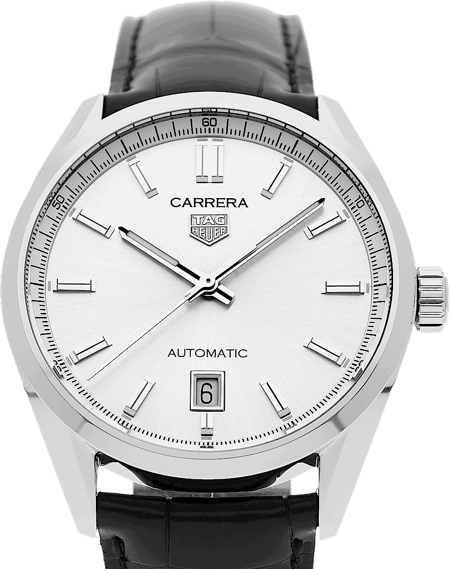 TAG Heuer Carrera Date, Reference: WBN2111.FC6505, Gender: Unisex, Size: 39mm, Dial color: Silver, Strap material: Alligator Leather, Movement: Automatic, Year: 2025, Condition: New and unworn. An inspection by our certified watchmakers guarantees authenticity., Documents: Original papers, CHRONEXT Certificate