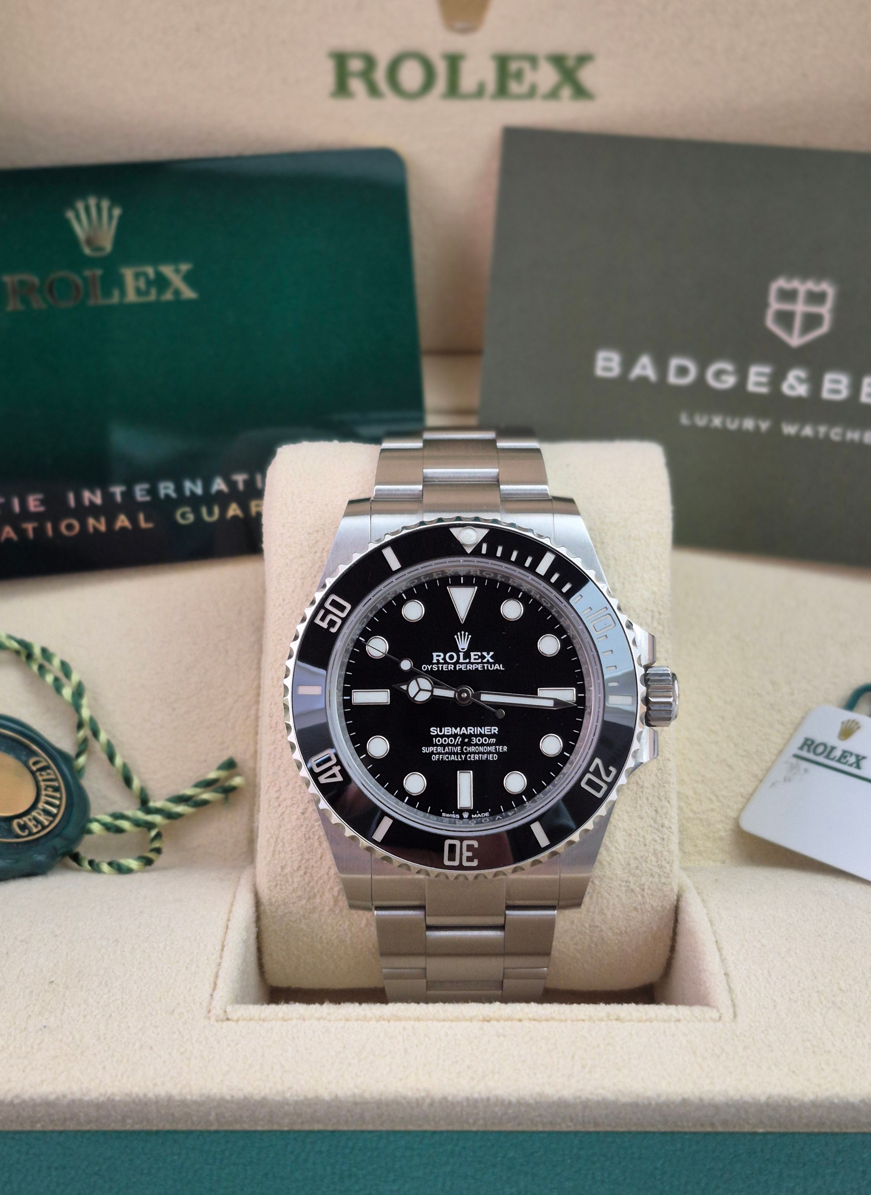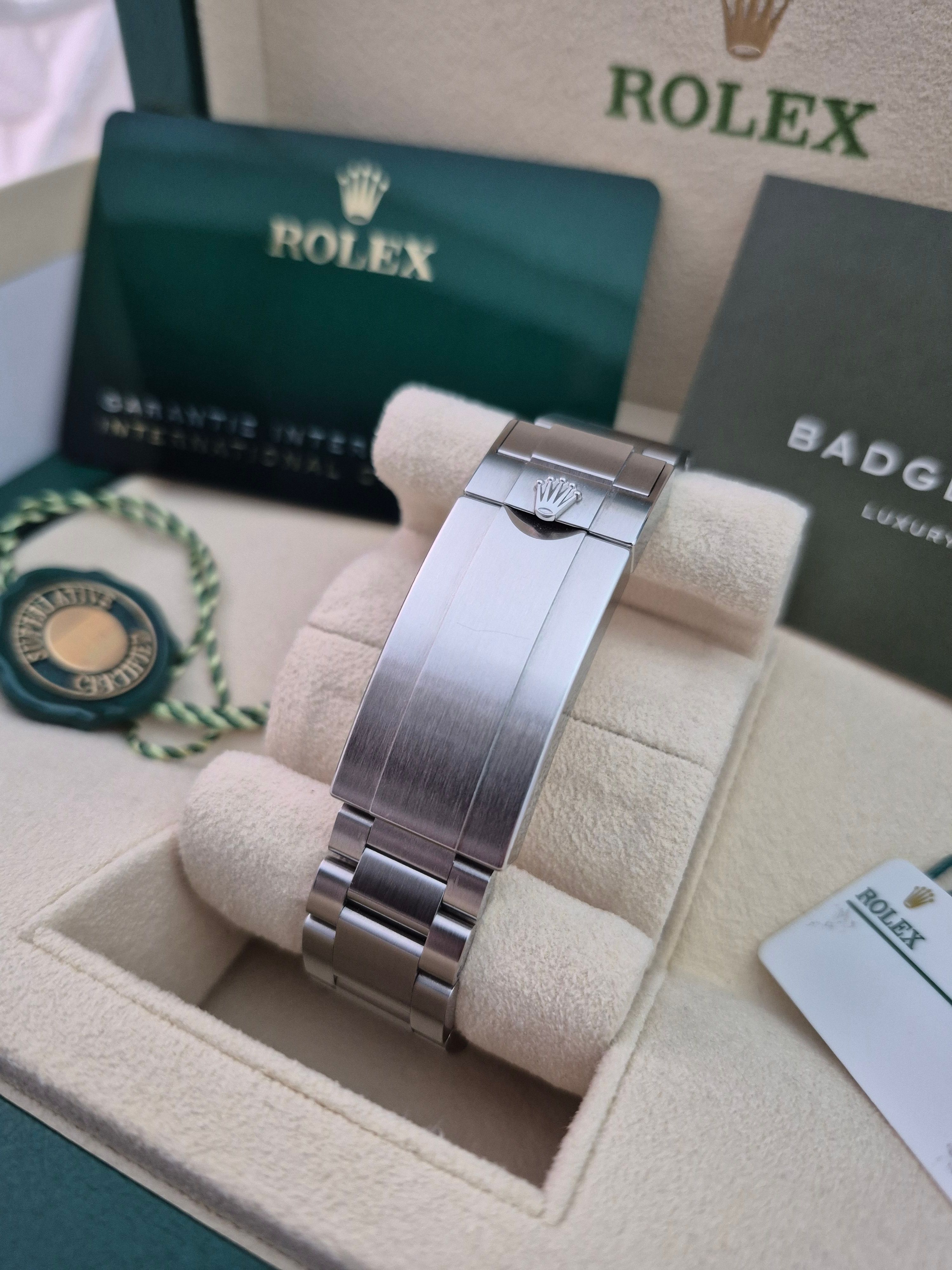 The no-date Submariner is the purest expression of Rolex design: clean, timeless, and built for any occasion. With its 41mm Oystersteel case, black dial, and Cerachrom bezel, this watch combines tool-watch heritage with modern precision. The Chromalight display ensures maximum legibility, while the Oyster bracelet with Glidelock clasp delivers comfort and versatility.