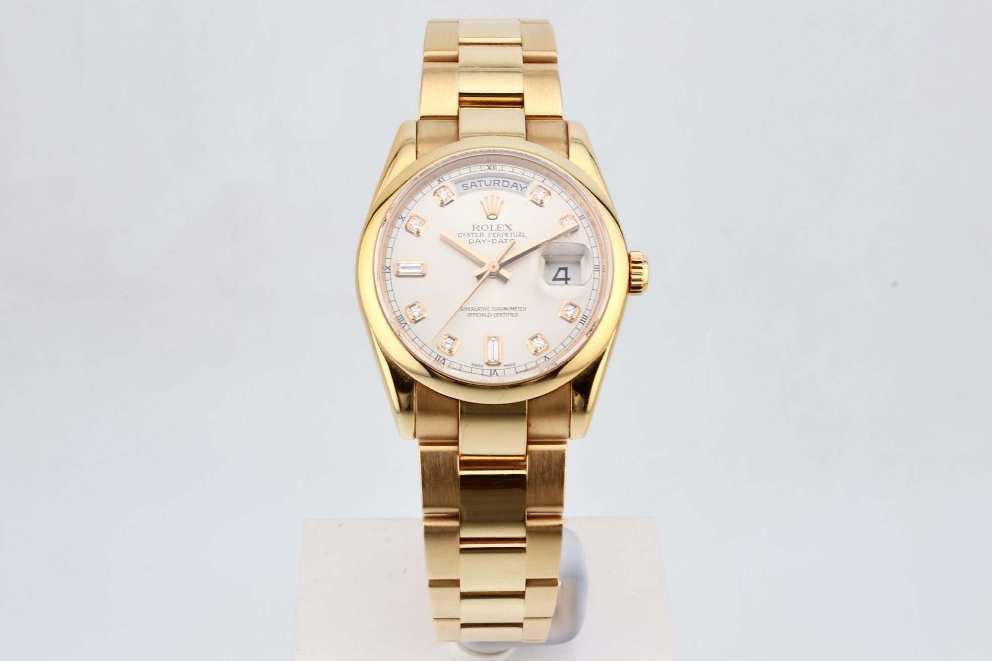 Rolex Day-Date 36 Day-Date 36mm Rose Gold Silver Dial With Diamonds - With Papers - 118205 2007