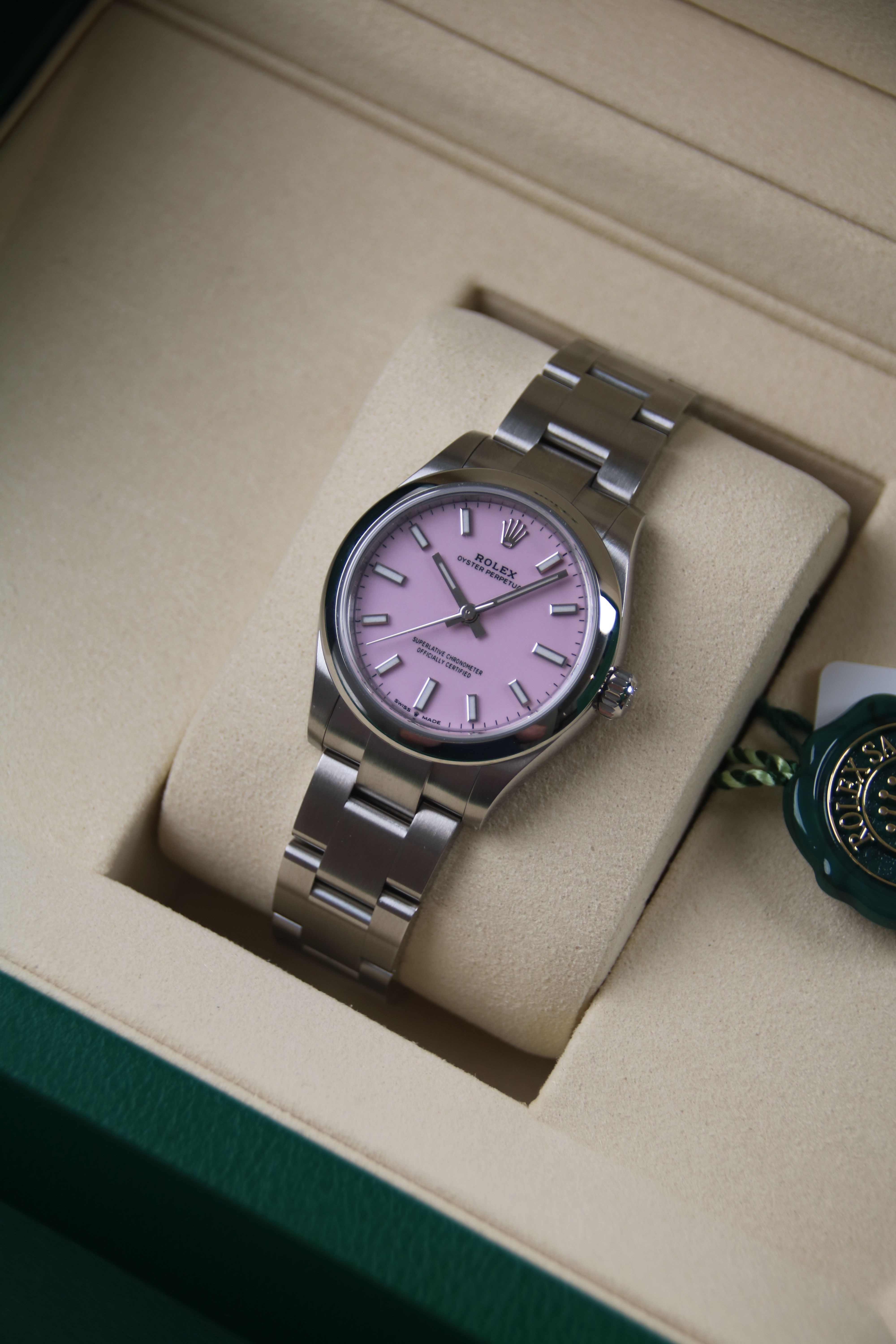 For sale is a brand new and unworn Oyster Perpetual 31 with Candy Pink dial. Purchased from the authorized retailer in August 2025, Rolex warranty until 2030. Comes as a full set, including white tag and bezel protector etc.