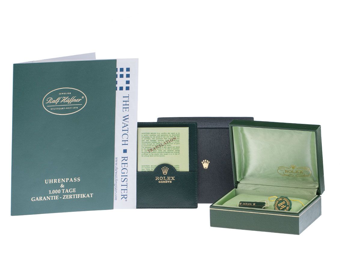 Inklusive certified pre owned Siegel / Uhrenpass mit einem Farbbild, der genauen Beschreibung sowie dem Wiederbeschaffungswert der Uhr über 4800,-€ und 1000 Tage Garantie ab Kaufdatum.
