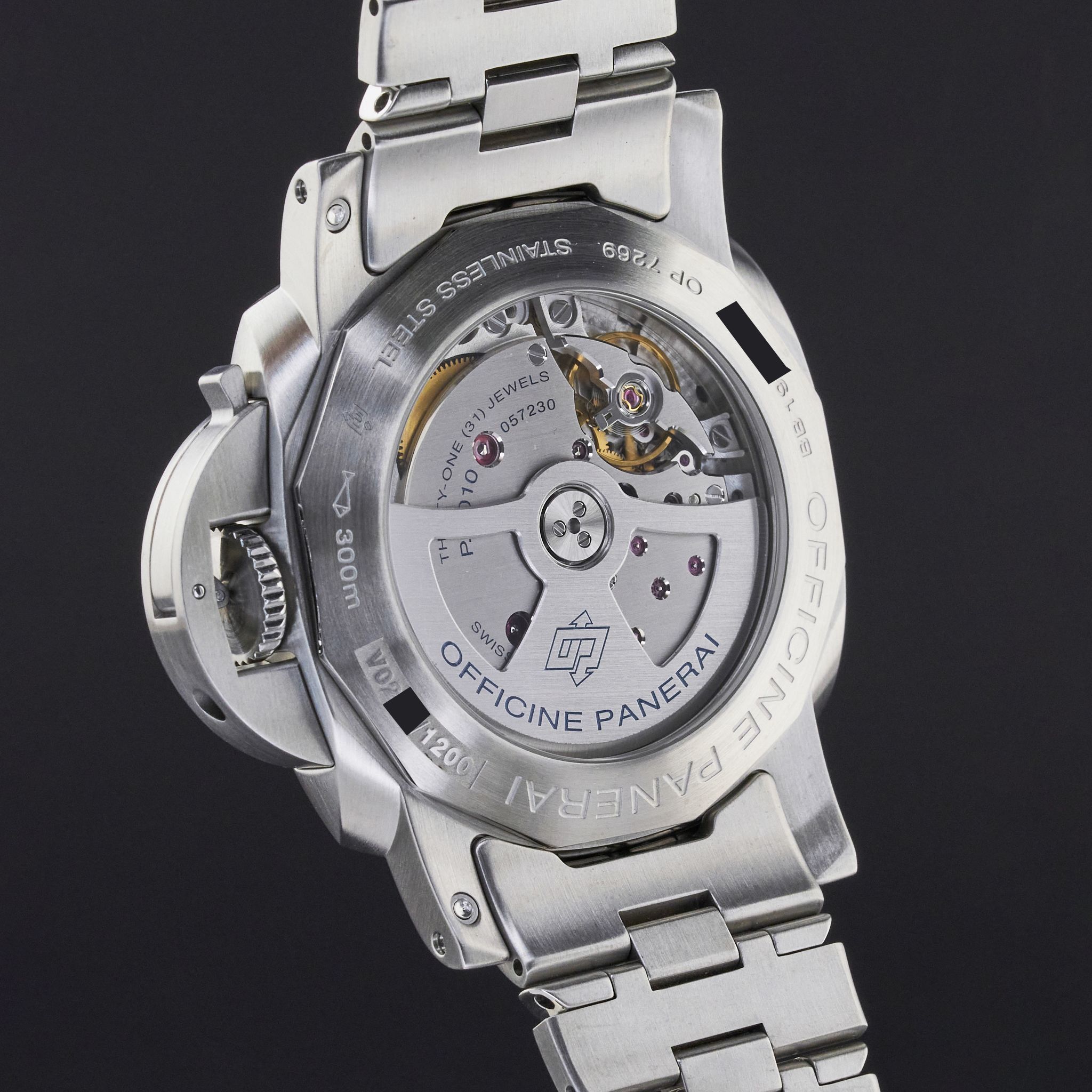 This Panerai Luminor Marina Automatic PAM 01058 features a Black tapestry dial and is crafted from stainless steel, with a production year of 2019.