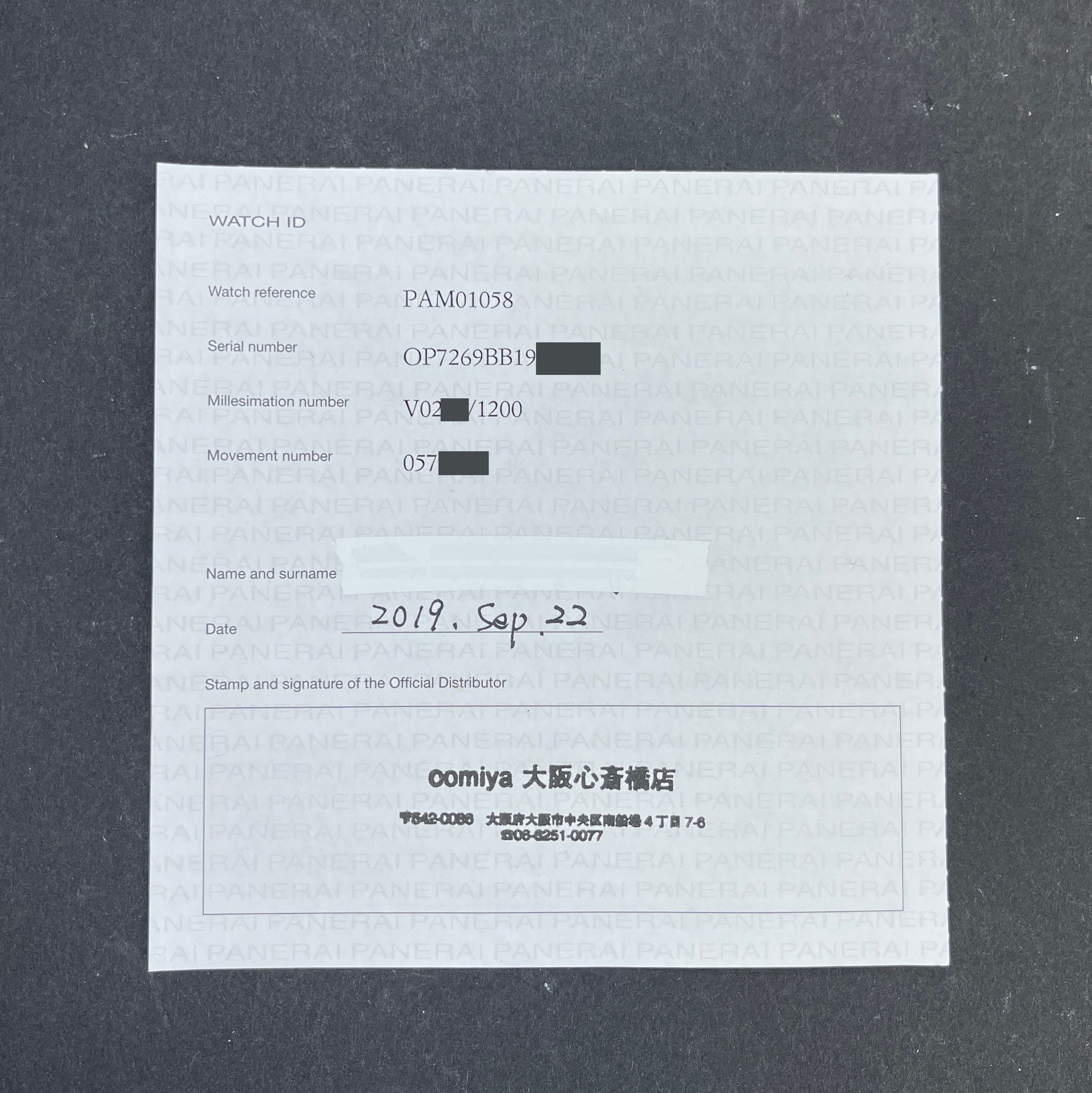 Panerai Luminor Marina Automatic, PAM 01058, 44mm, 2019, Steel, Blue Arabic dial, Fullset, 1y warranty