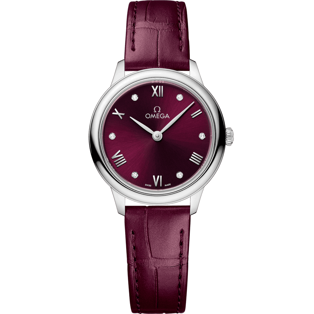 Omega 434.13.28.60.61.001 De Ville Quartz 27.5 Stainless Steel / Burgundy - Diamond