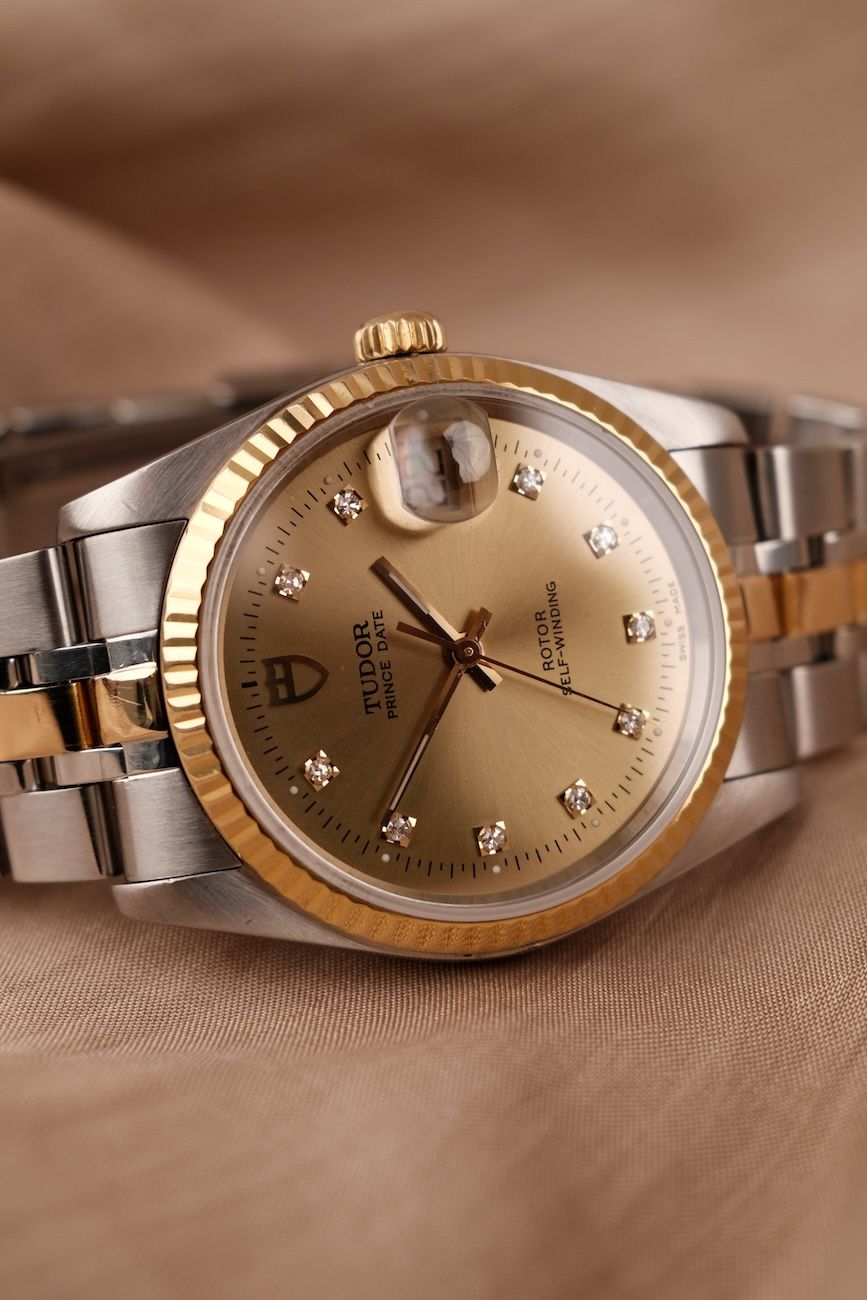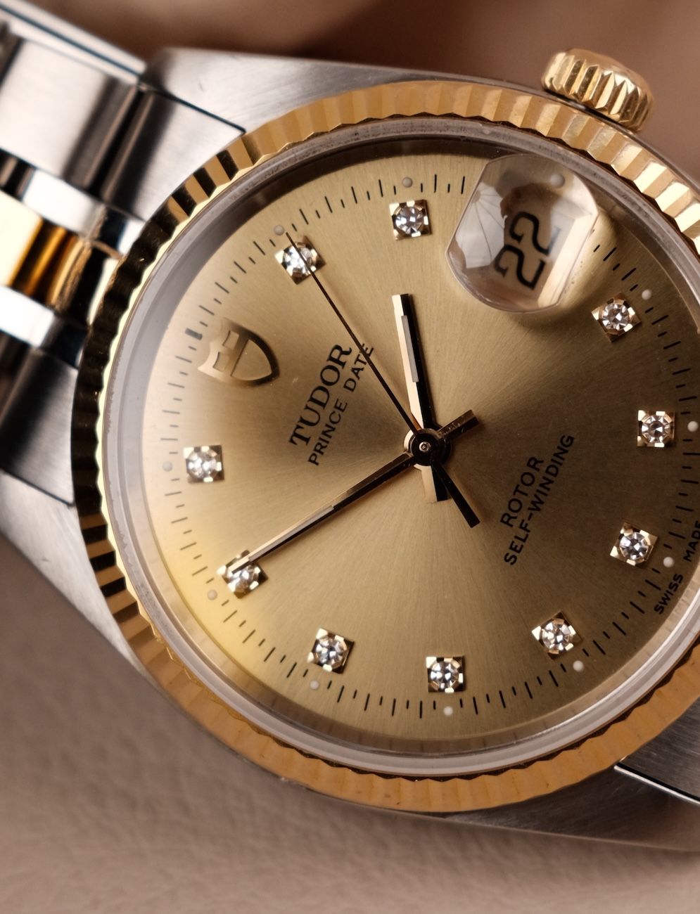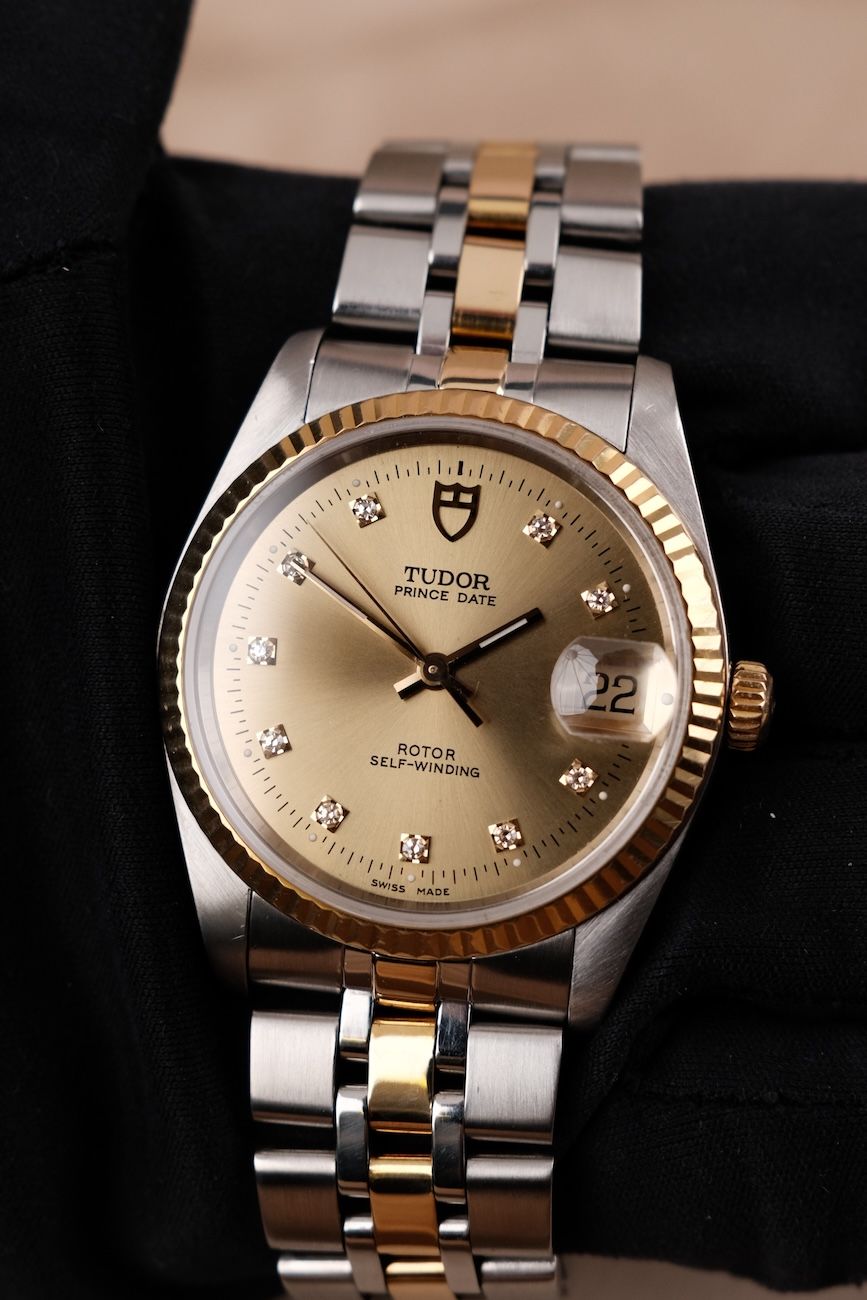 Tudor Prince Date Tudor Prince Date, S/G, Champagne Diamond Dial, Fluted Bezel 74033 34mm, SERVICED