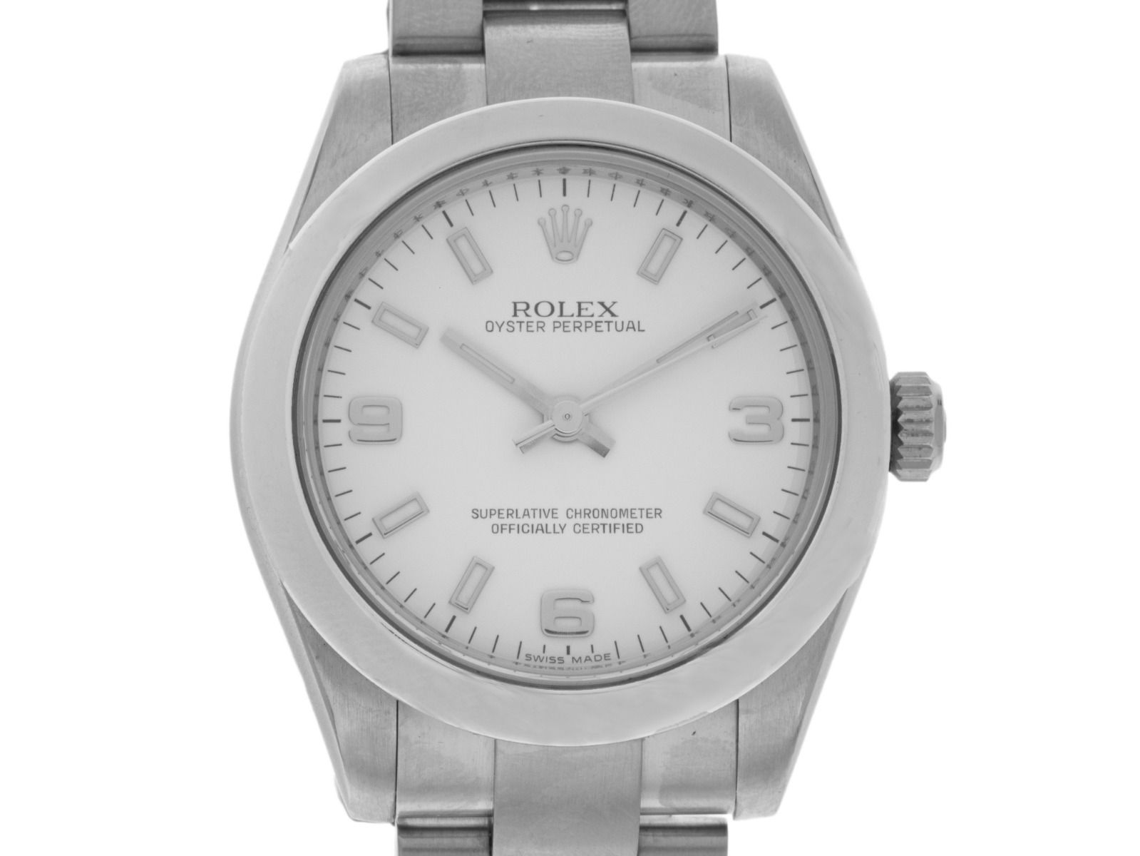 Gehäuse Edelstahl poliert und satiniert, Gehäusedurchmesser ohne Krone 31mm, Gehäusehöhe 10,7mm. Lünette Edelstahl glatt und poliert. Armband Oyster Edelstahl poliert und satiniert, Faltschließe Edelstahl mit Hersteller-Logo. Zifferblatt weiß mit aufgesetzten arabischen Ziffern und weißgoldenen Indexen sowie weißgoldenen Zeigern. Uhrwerk Automatik, Chronometer, Rolex Manufakturkaliber 2231 mit 31 Edelsteinen. Anzeige von Stunde, Minute und Sekunde über Zeiger aus der Mitte mit Sekundenstopp zur sekundengenauen Einstellung der Uhrzeit. Saphirglas kratzfest. Krone verschraubbar mit Hersteller-Logo. Boden Edelstahl verschraubt. Gewicht der Uhr inklusive Armband 90g, Länge des Armbandes inklusive Gehäuse 165mm. Referenznummer: 177200, Gehäusenummer: Z657XXX, Baujahr: 2006, ID: P160879000925H-8900, Artikelnummer: 10000082380. Mit Gangkontrolle und kompletter äußerlicher Aufarbeitung von September 2025. Original Rolex Box mit Umkarton und Ledermäppchen, Beschreibung, Rolex Chronometer-Siegel sowie Watchregister Auszug von September 2025, The Watch Register Zertifikat / ohne Eintrag (Internationale Datenbank für verlorene oder gestohlene Uhren), inkl. Servicenachweis Rolex von Oktober 2018 und Servicenachweis Wempe von Dezember 2024. Superschnäppchen, Kapitalanlage mit Wertsteigerungspotential. Sehr guter Zustand. Lieferzeit sofort.