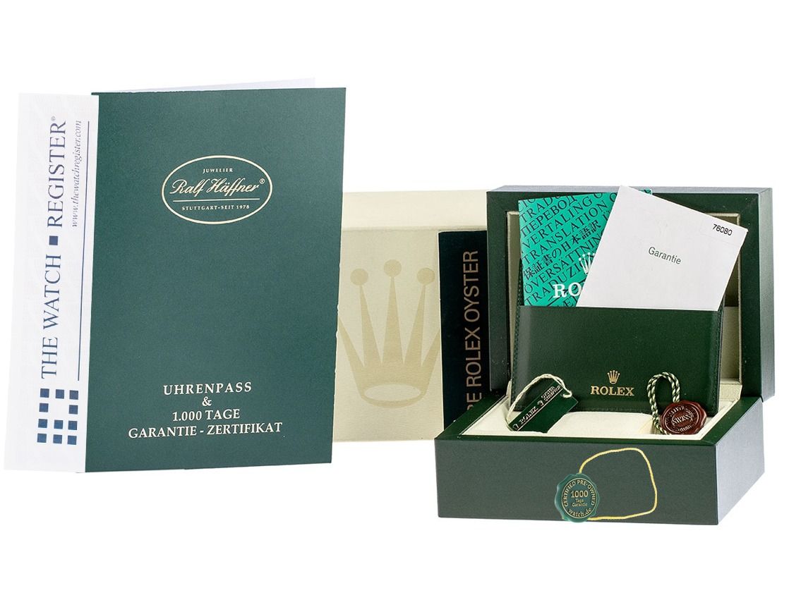 Inklusive certified pre owned Siegel / Uhrenpass mit einem Farbbild, der genauen Beschreibung sowie dem Wiederbeschaffungswert der Uhr über 6800,-€ und 1000 Tage Garantie ab Kaufdatum.