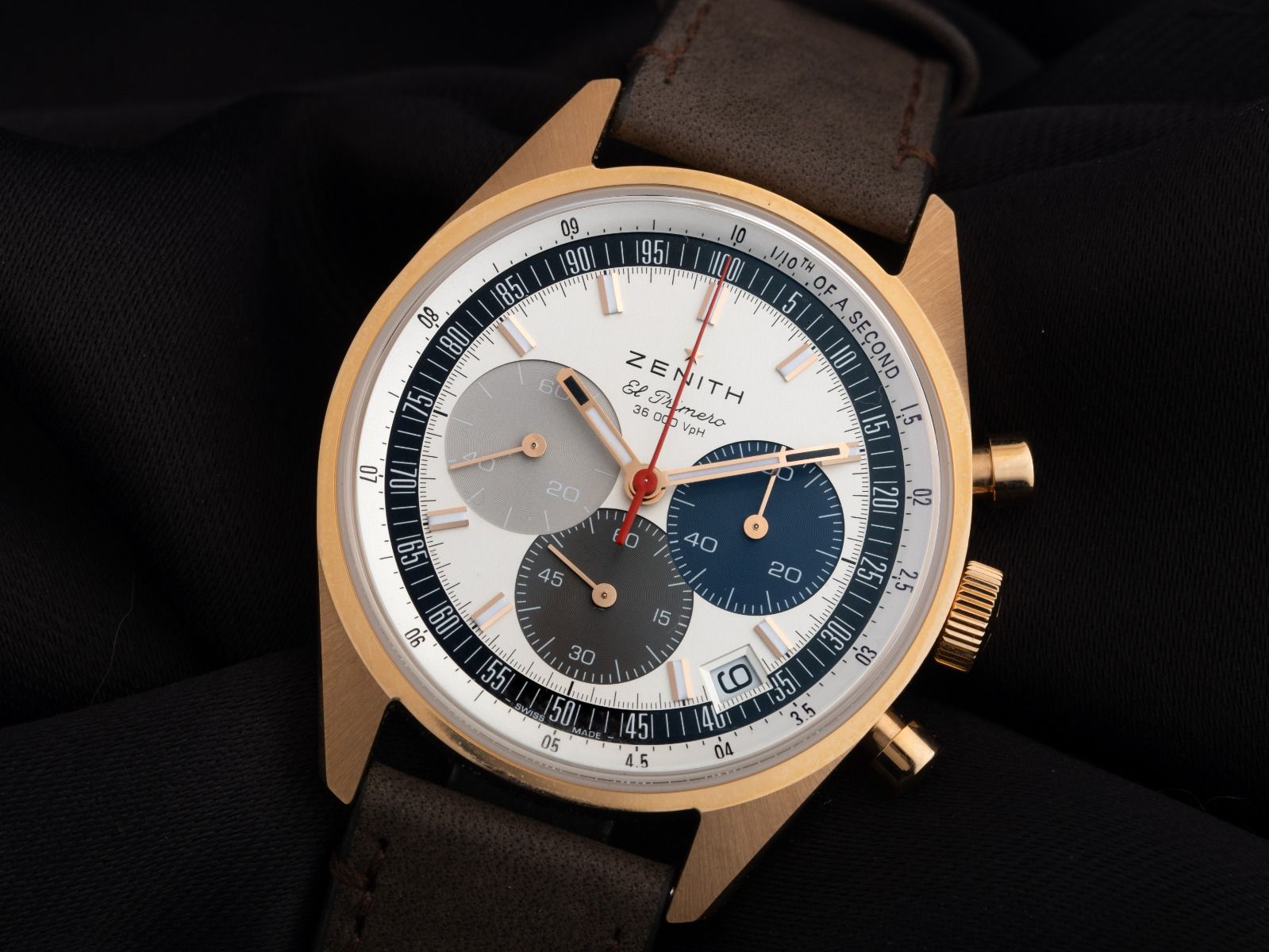 Zenith Chronomaster Original 18kt Roségold Automatik Chronograph Armband Leder Faltschließe