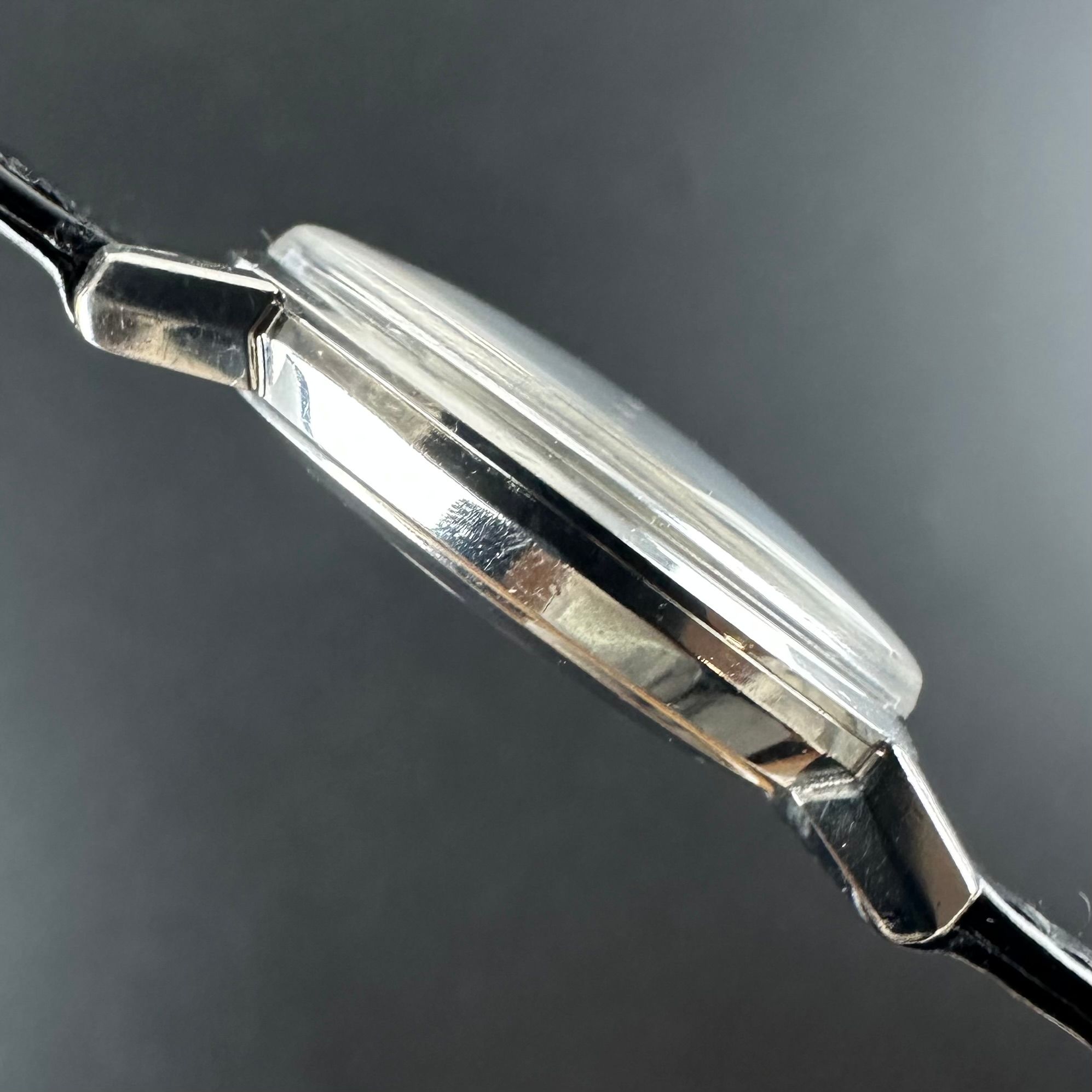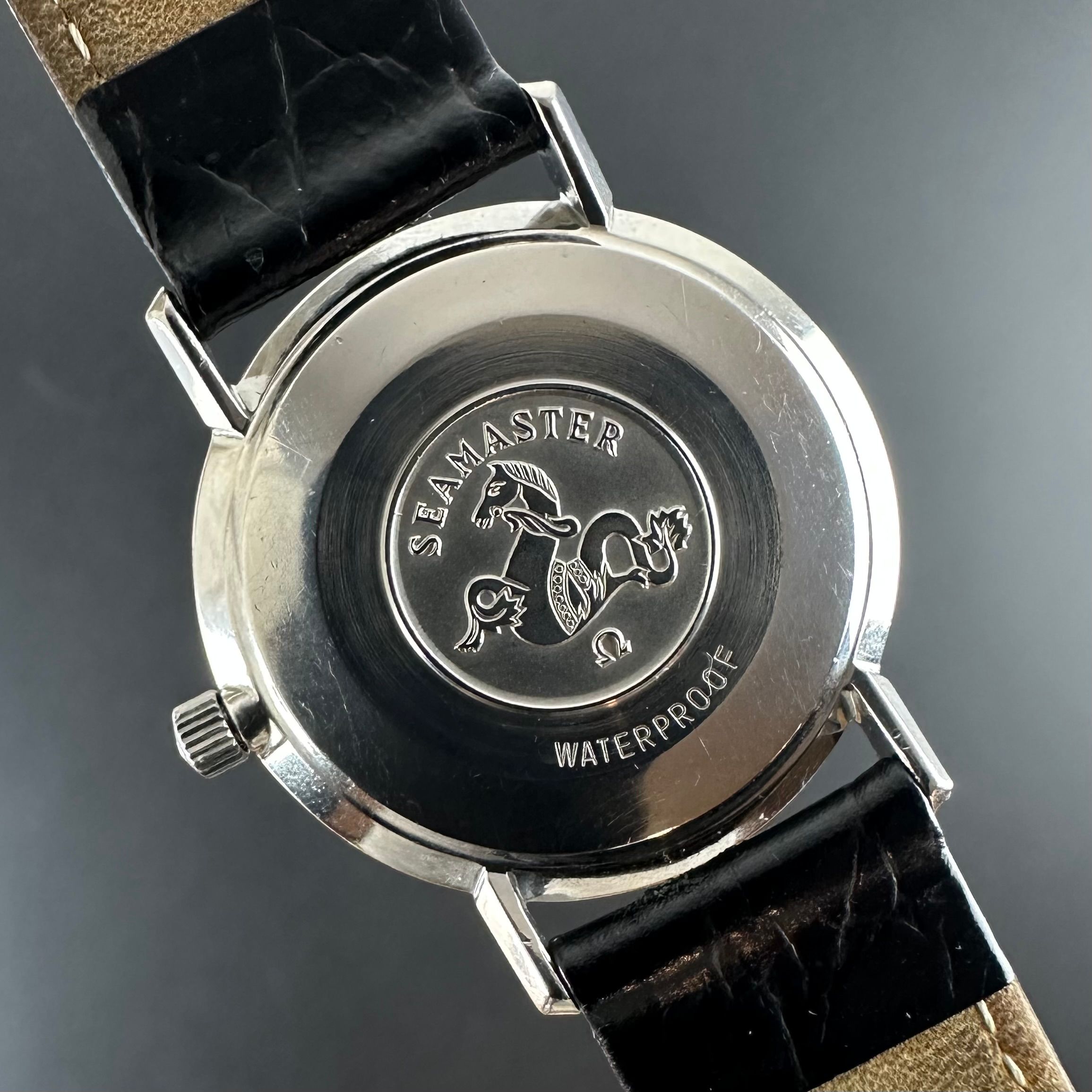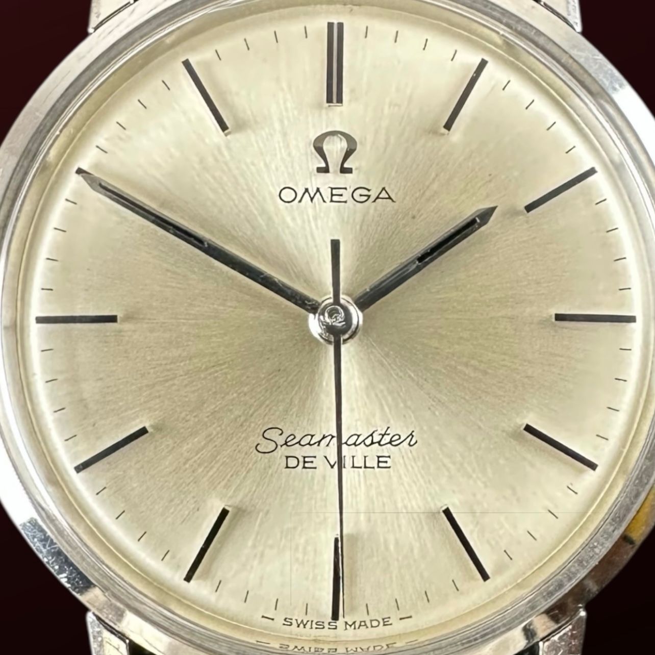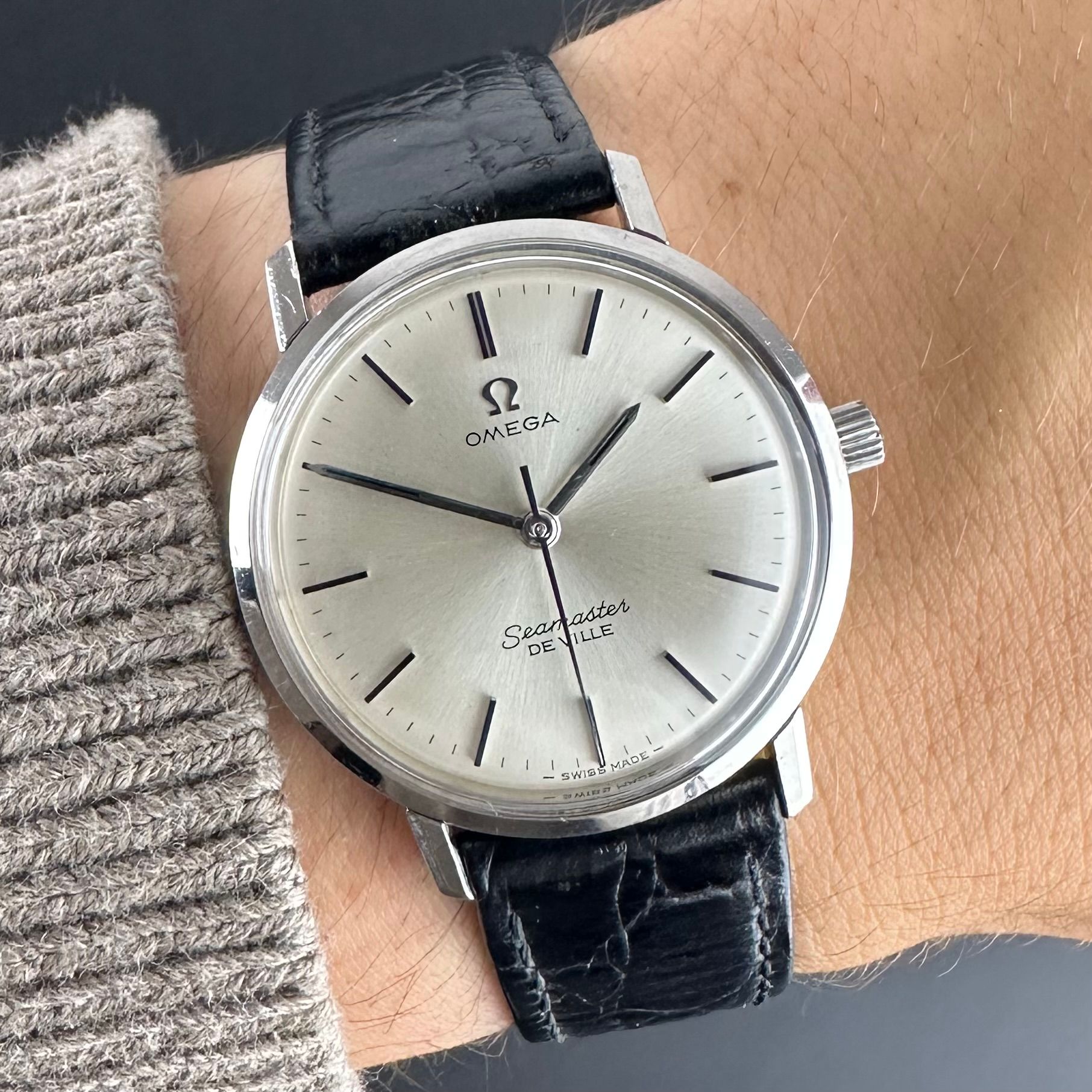 This vintage Omega Seamaster De Ville, produced in 1970, houses a caliber 601 manual-wind movement. The 33,5mm case makes it the mid-size model, featuring a white sunburst dial and a steel case in beautiful condition. It is fully original except for the new calf leather strap with a crocodile motif. Overall, it is an excellent choice for daily wear.