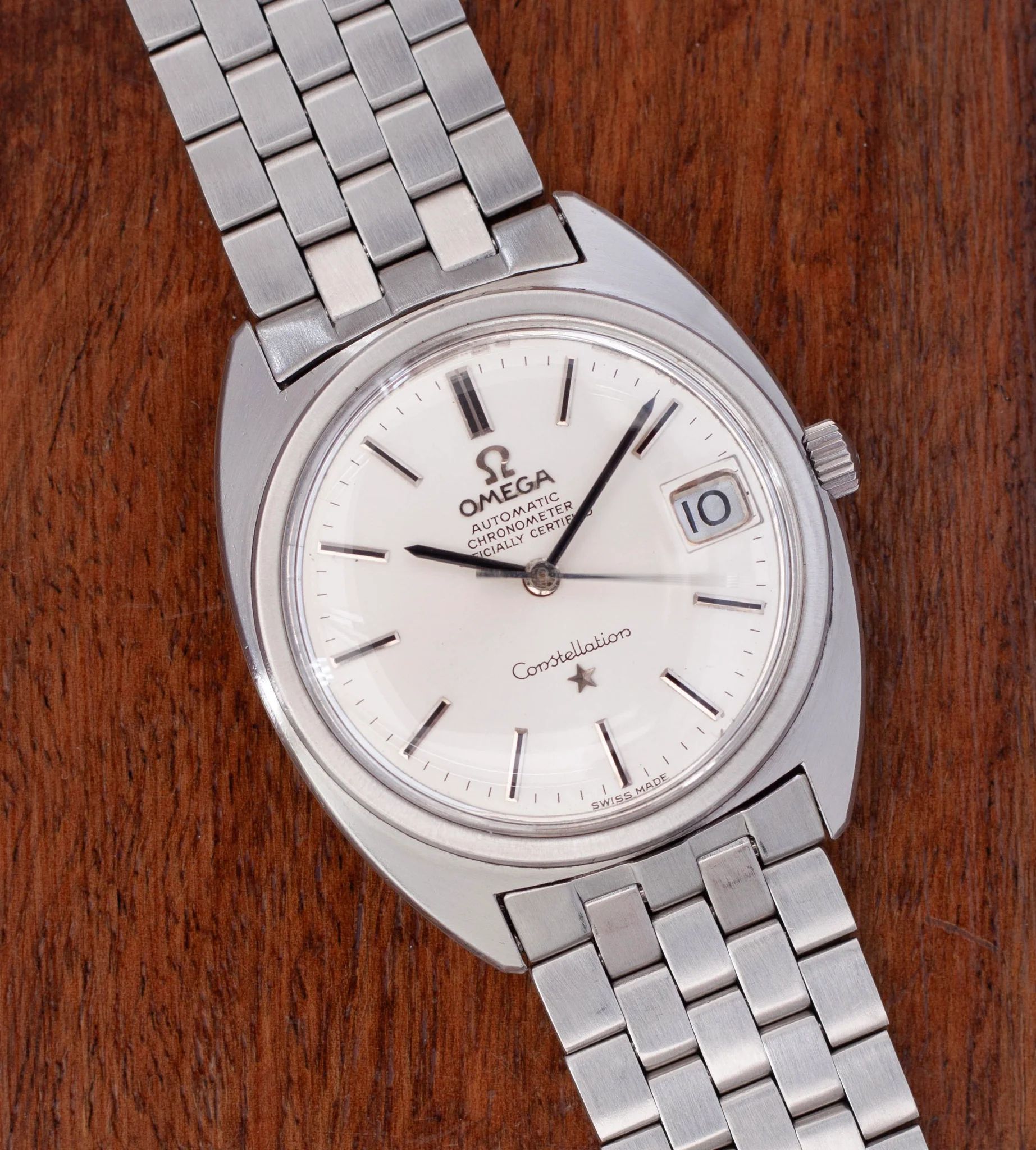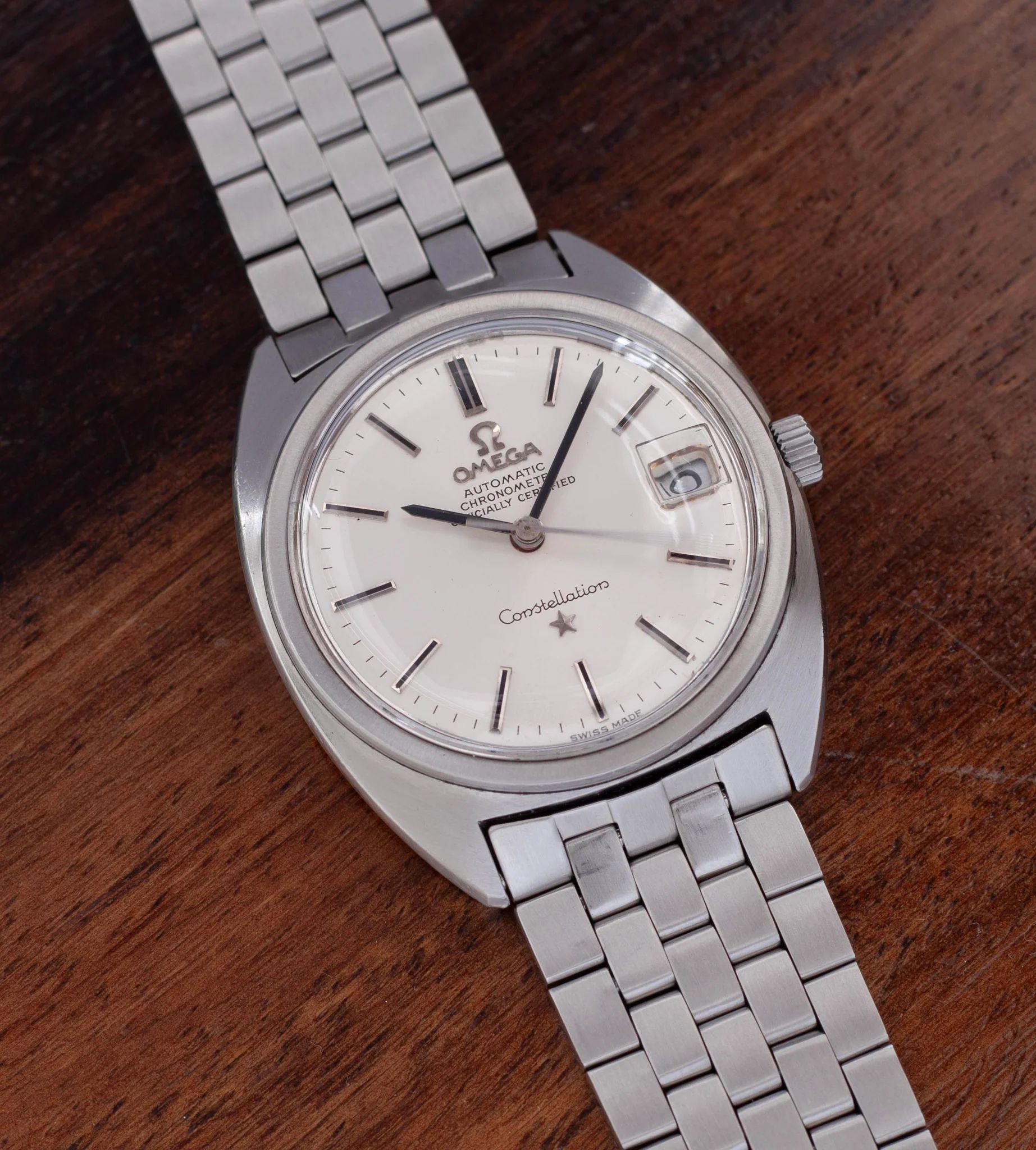 Additionally, this vintage Constellation 168.017 is fitted with an Omega "brick bracelet," named after the shape of its links. This adds a sportier look to the watch. The Omega Constellation is powered by the automatic caliber 564, which has recently undergone a service.