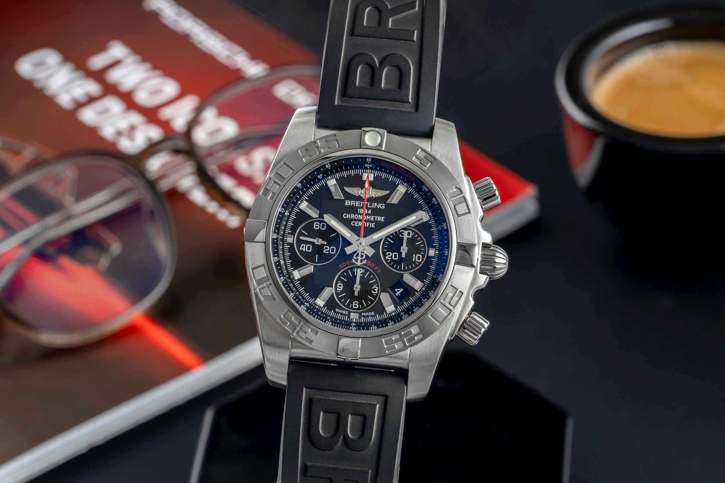 Alternative title: Breitling AB011010/BB08 Chronomat 44; Breitling Chronomat 44 Flying Fish Stahl Automatik Ref. AB011010/BB08 B&P [2505429]