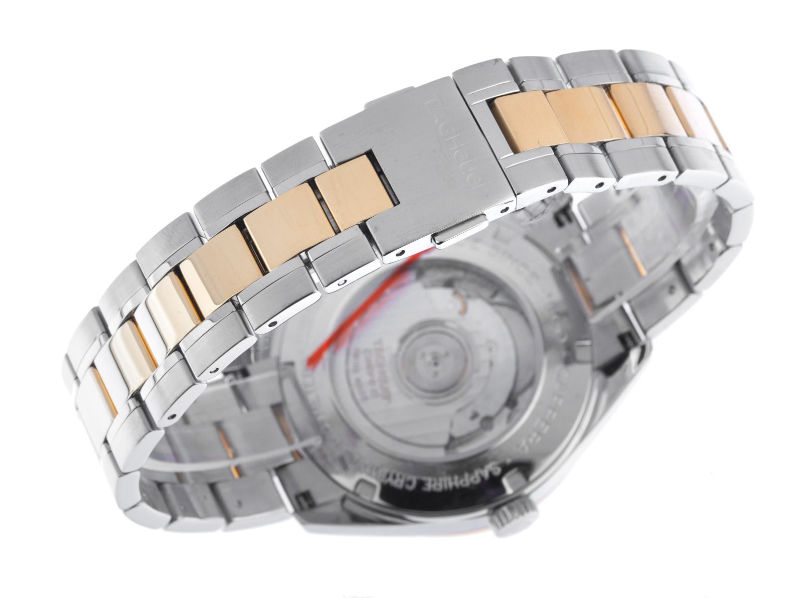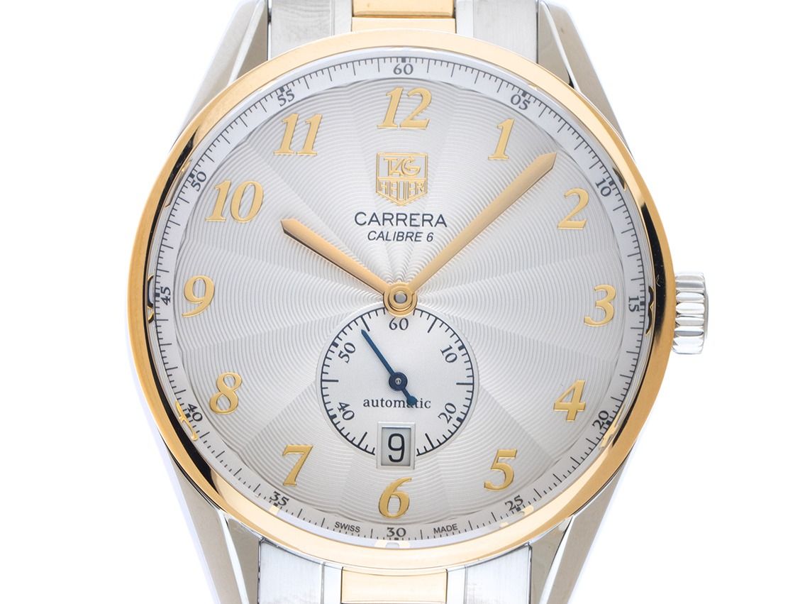 Gehäuse Edelstahl poliert und satiniert, Gehäusedurchmesser ohne Krone 38mm, Gehäusehöhe 12,5mm. Lünette Gelbgold poliert. Armband Edelstahl / Gelbgold poliert und satiniert, Sicherheitsfaltschließe Edelstahl mit Hersteller-Logo. Zifferblatt weiß guillochiert mit aufgesetzten gelbgoldenen arabischen Ziffern und gelbgoldenen Zeigern. Uhrwerk Automatik, Kaliber 2895-2 mit 27 Edelsteinen. Anzeige von Stunde, Minute und Sekunde über Zeiger aus der Mitte mit Sekundenstopp zur sekundengenauen Einstellung der Uhrzeit, kleine Sekunde mit Sekundenstopp bei 6 Uhr, Datumsanzeige mit Schnellverstellung bei 6 Uhr. Saphirglas kratzfest. Krone mit Hersteller-Logo. Boden Edelstahl verschraubt und graviert mit Saphirglas Sichtfenster. Gewicht der Uhr inklusive Armband 128g, Länge des Armbandes inklusive Gehäuse 190mm. Referenznummer: WAS2150.BD0733, Gehäusenummer: RAJ4XXX, ID: P162826500925H-4500, Artikelnummer: 10000082438. Mit Gangkontrolle und kompletter äußerlicher Aufarbeitung von Oktober 2025. Original Tag Heuer Box mit Umkarton und Garantie Papiere von Oktober 2013 sowie Beschreibung und Watchregister Auszug von Oktober 2025, The Watch Register Zertifikat / ohne Eintrag (Internationale Datenbank für verlorene oder gestohlene Uhren), Full Set. Wie Neu. Lieferzeit sofort.