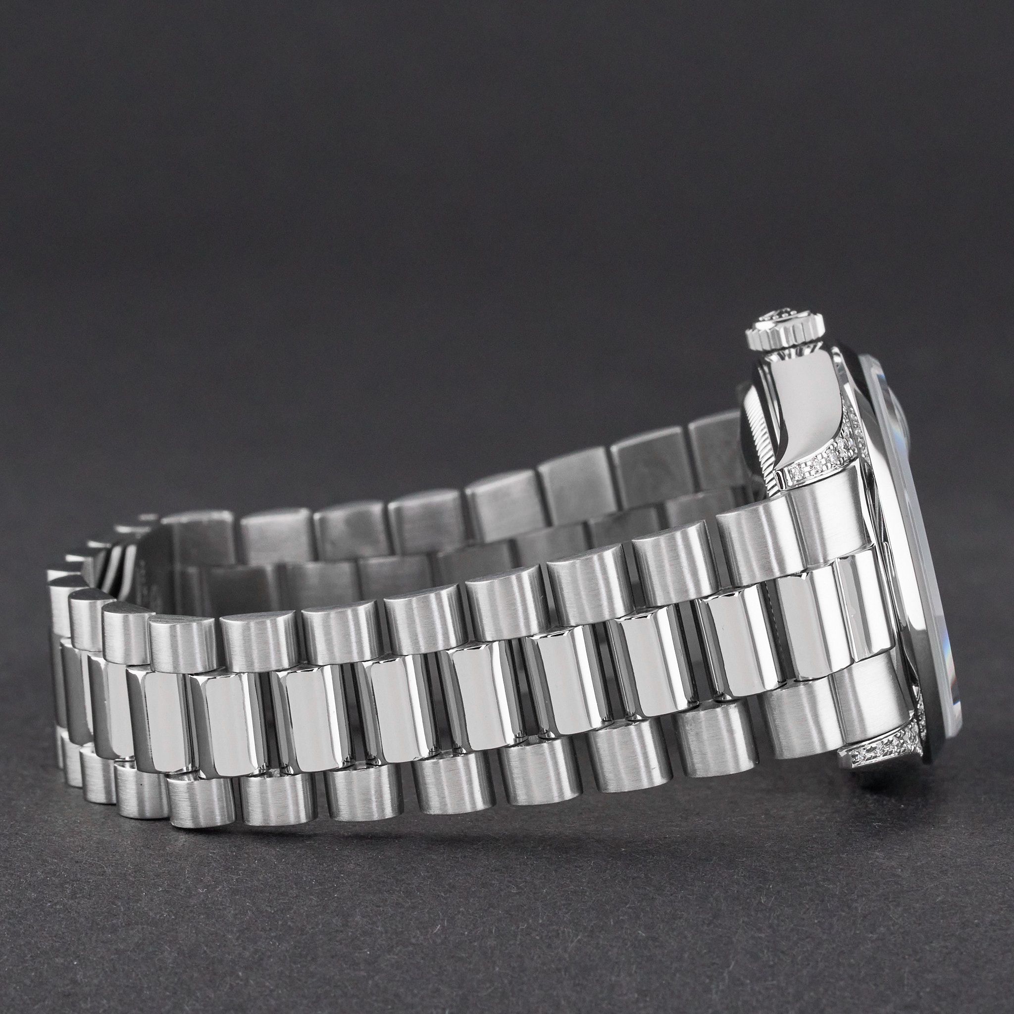 Designed for true connoisseurs, the Day-Date 18296 stands as a symbol of distinction and success. A rare and breathtaking piece that embodies the essence of Rolex’s artistry in high watchmaking.This Rolex Day-Date 18296 features a Blue myriad big diamond dial and is crafted from platinum, with a production year of 1995.