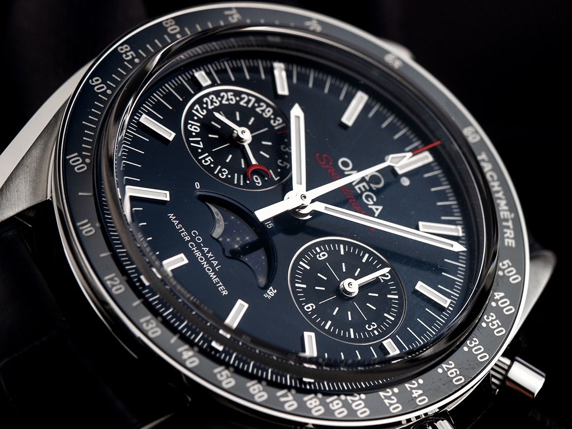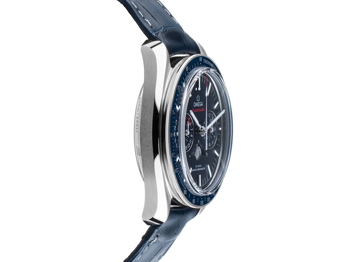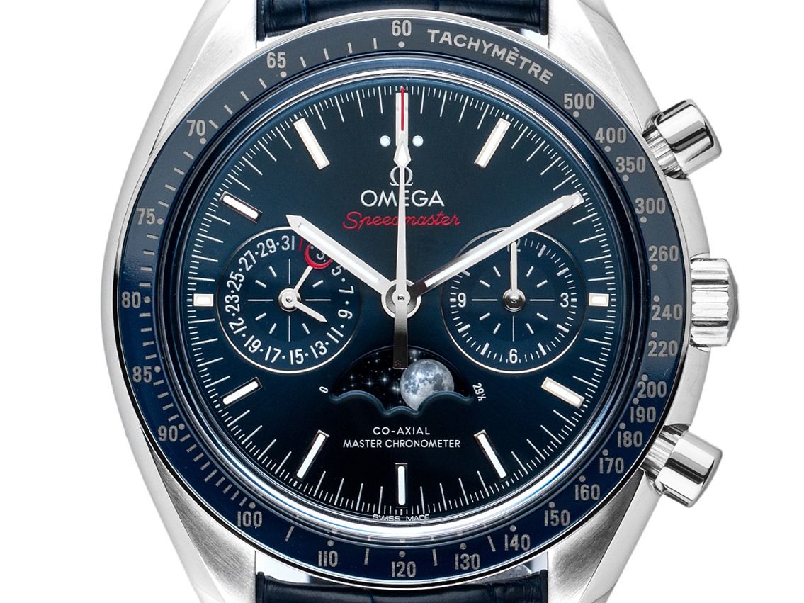 Omega Speedmaster Moonphase Stahl Keramik Automatik Co‑Axial Master Chronometer Chronograph Armband Krokoleder Faltschließe