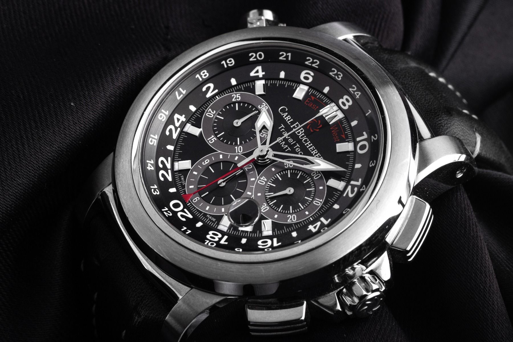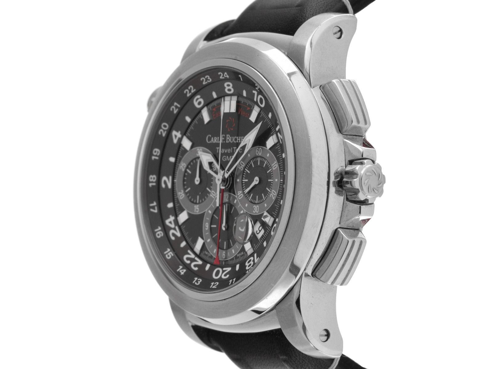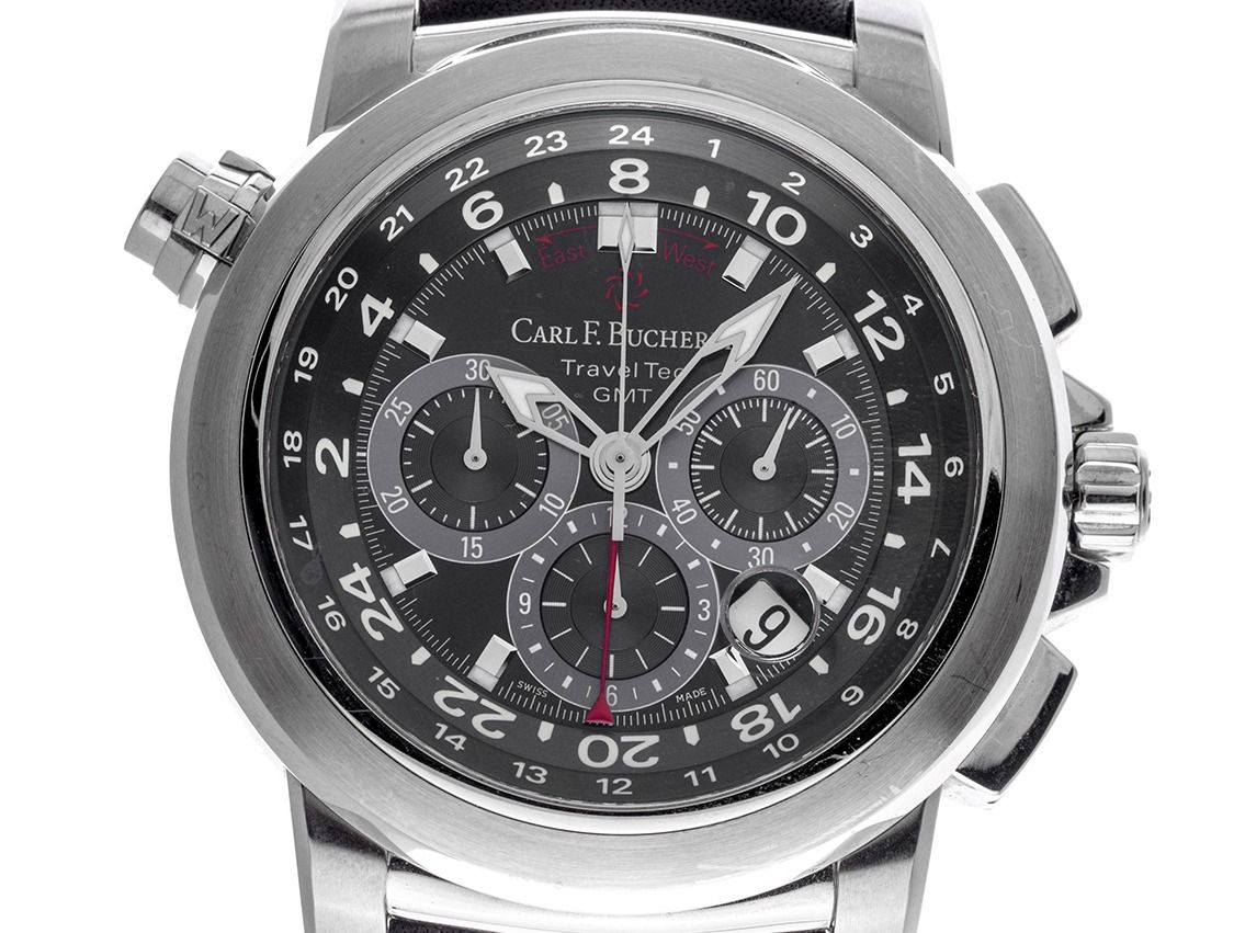Carl F. Bucherer Patravi Traveltec II GMT Stahl Automatik Chronograph Armband Leder Faltschließe