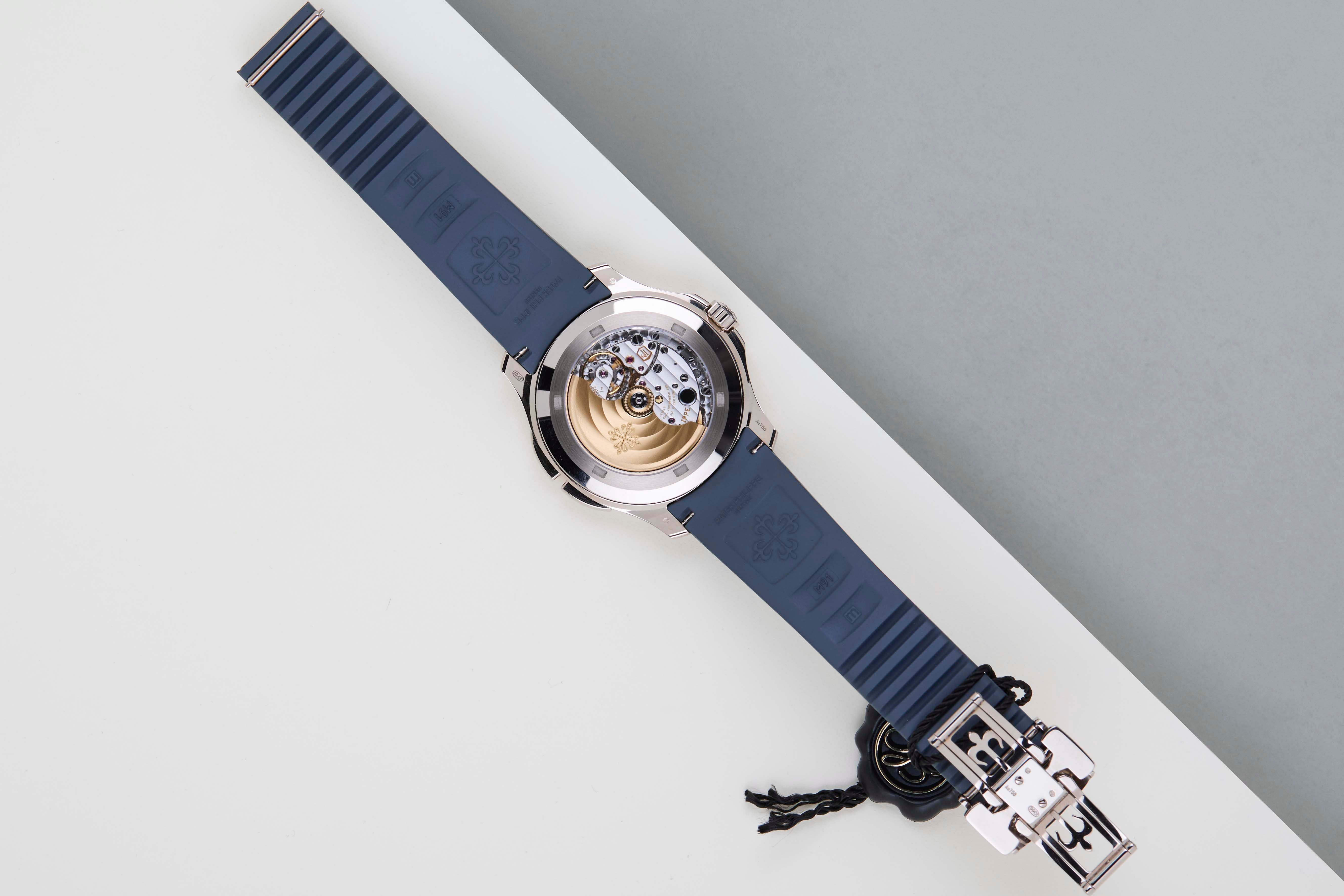 New & Unworn | Full Set | International Patek Philippe Warranty Until December 2029 | Originally Delivered in Germany | Including Patek Philippe Brown Tag Patek Philippe introduced the Aquanaut collection in 1997, marking a bold step into the modern luxury sports watch category. Inspired by the legendary Nautilus, the Aquanaut set itself apart with a more contemporary and casual appeal, featuring a signature embossed dial and a revolutionary tropical rubber strap.This Patek Philippe Aquanaut 5164G-001 was sold for the first time in December 2024.The Aquanaut 5164G-001 is crafted from 18kt solid White Gold. The watch is powered by the automatic caliber 26-330 S C FUS, offering a precise timekeeping experience. The Blue PVD grenade dial, paired with luminous hands and Arabic numerals, ensures legibility while maintaining the signature elegance of the Aquanaut line.This Patek Philippe Aquanaut 5164G-001 is in New & Unworn condition and comes with the original Patek Philippe Certificate of Origin and Box. Furthermore, the watch still has Worldwide Patek Philippe Warranty until December 2029