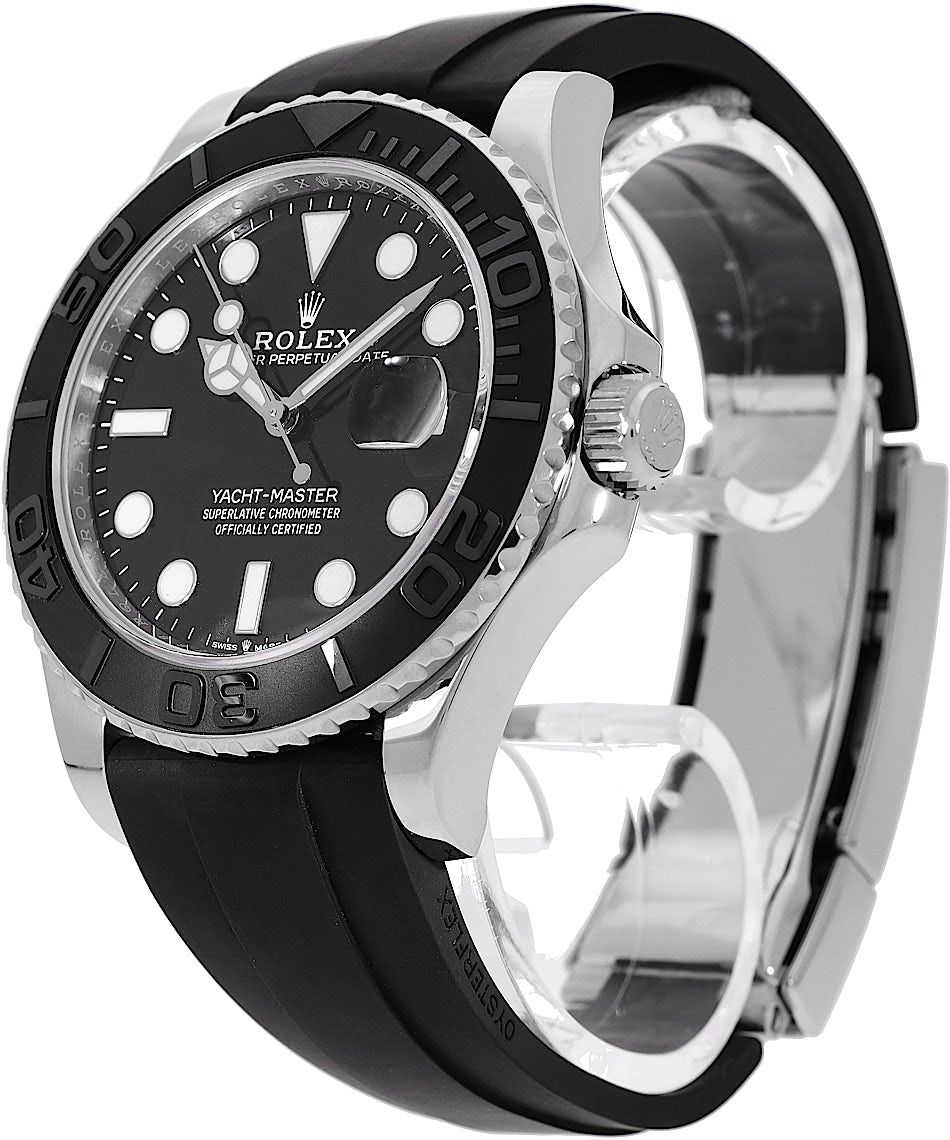 Rolex Yacht-Master 42, Reference: 226659, Gender: Male, Size: 42mm, Dial color: Black, Strap material: Rubber, Movement: Automatic, Year: 2021, Condition: Previously worn with some signs of usage. The movement is flawless and the case has been cleaned. watch tested to ensure full functionality. An inspection by our certified watchmakers guarantees its authenticity., Documents: Original papers, CHRONEXT Certificate