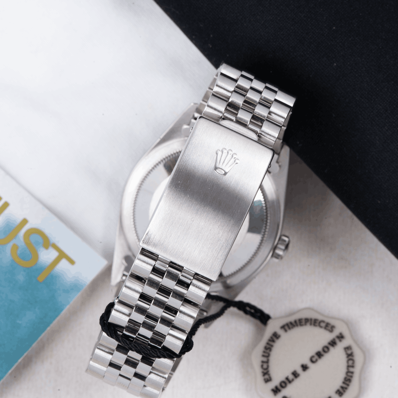 Powered by the Rolex 3135 automatic movement, it includes a quickset date function and is protected by an Sapphire crystal.
