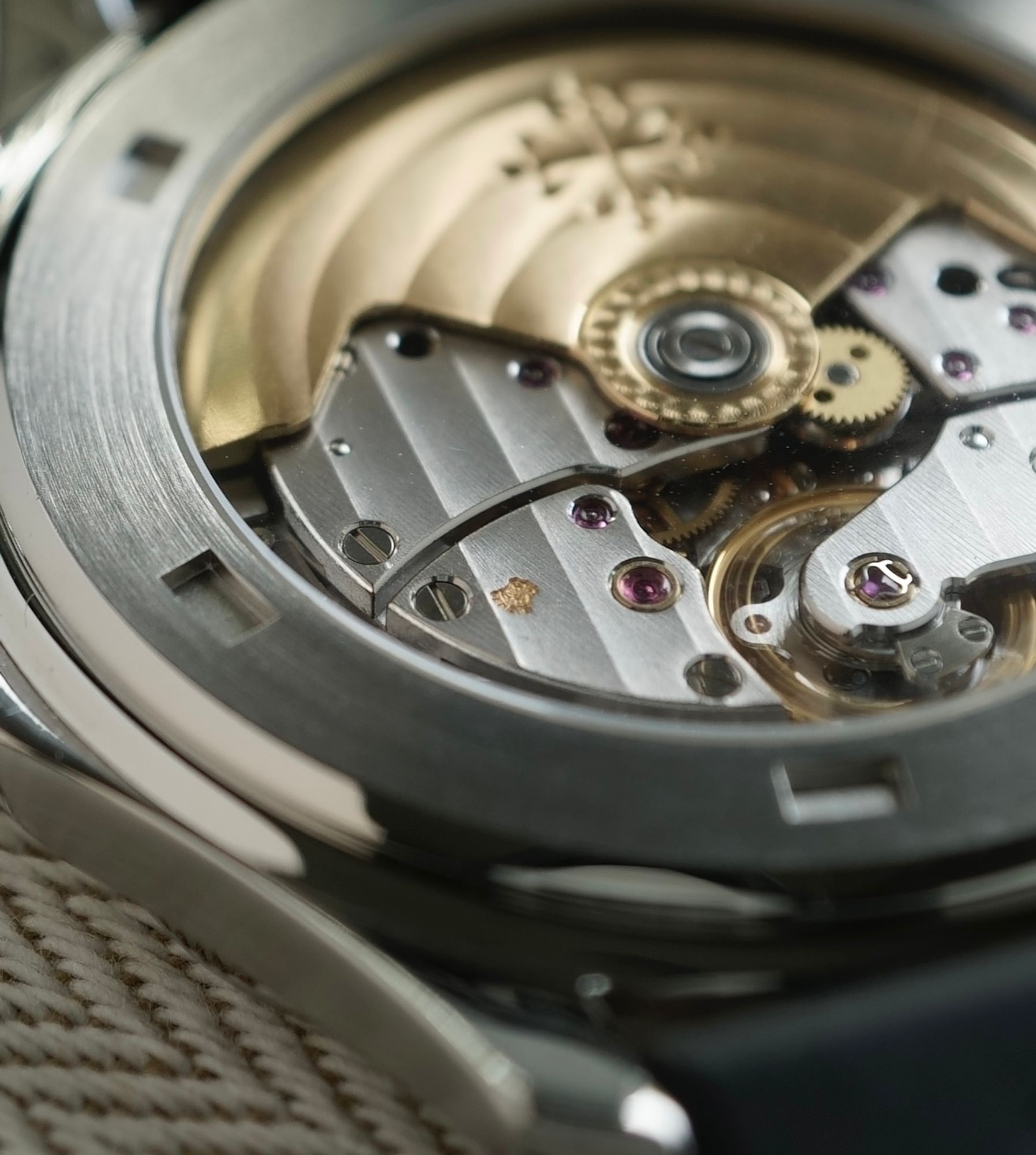 The 38mm stainless steel case and folding clasp are in superb condition. Both the case and folding clasp show hardly any signs of wear. The Patek Philippe automatic movement, “Calibre 315 SC”, which means "Seconde Centrale" is checked by us and running perfect. The movement can be admired through the transparent glass at the back of the case. Fitted to the case is a new uncut green strap and a cut black strap.