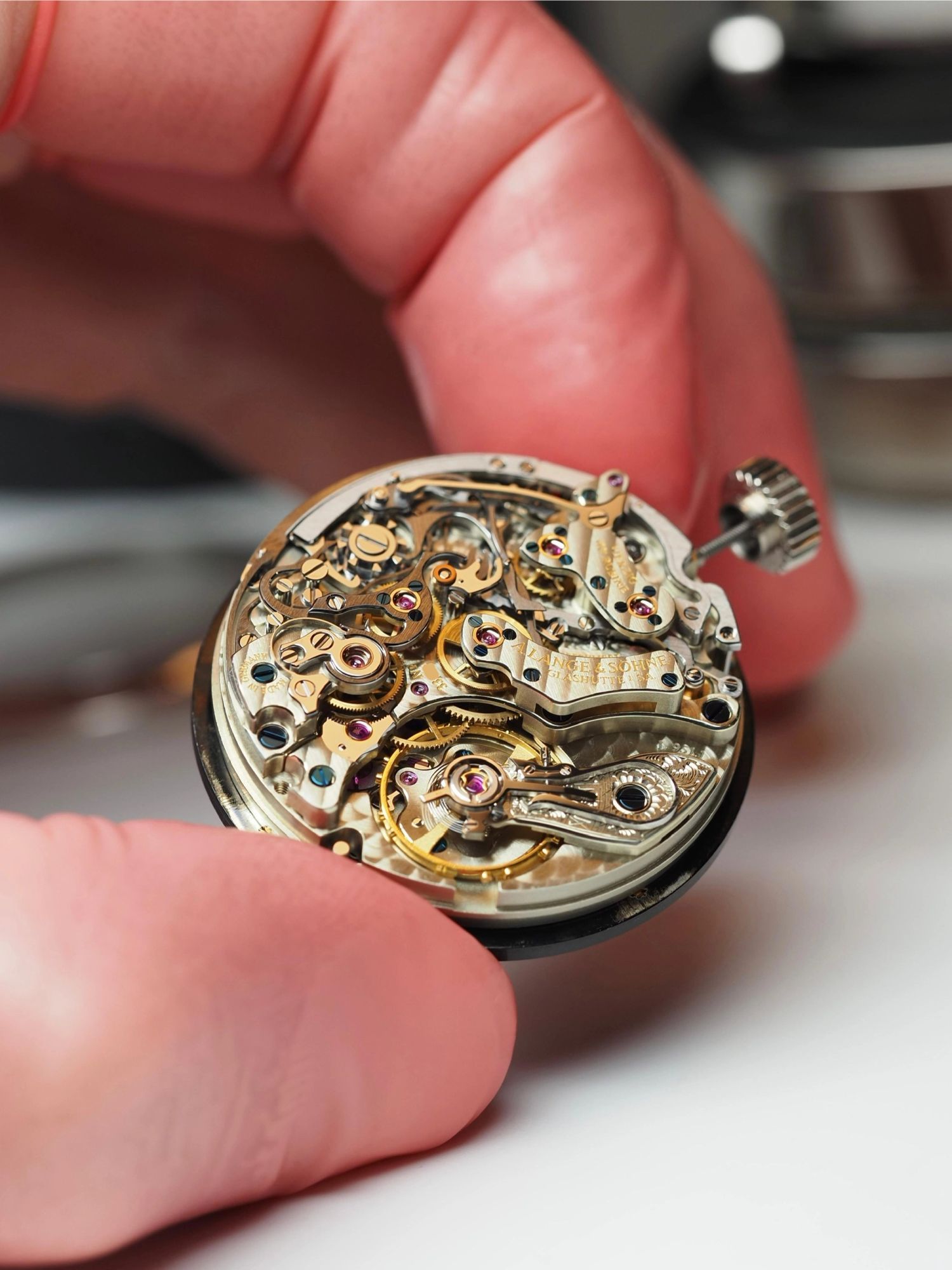 The horizontal-clutch chronograph construction reveals an unparalleled depth of architectural complexity. The movement measures 30.60 mm in diameter and 7.5 mm in thickness.