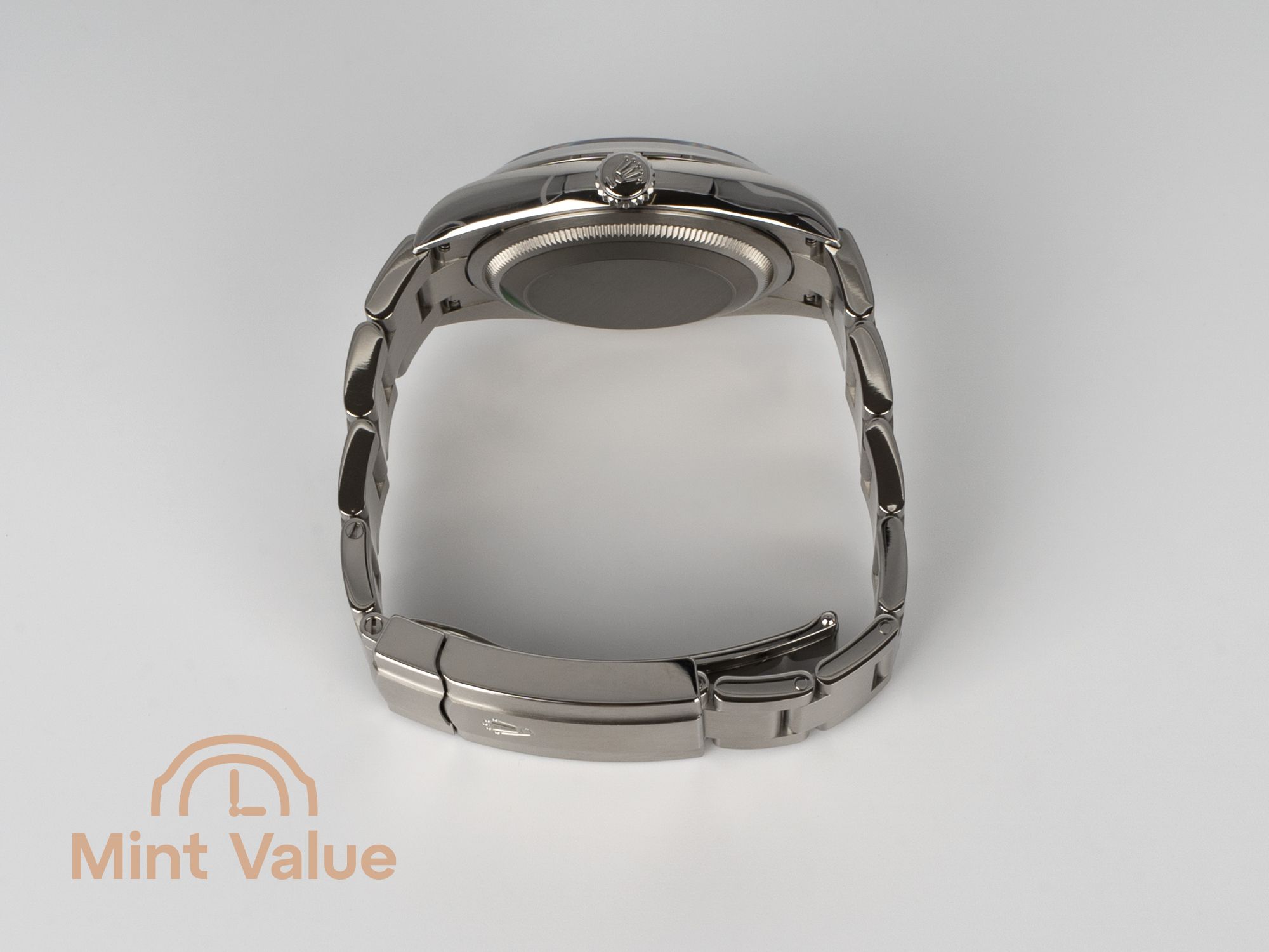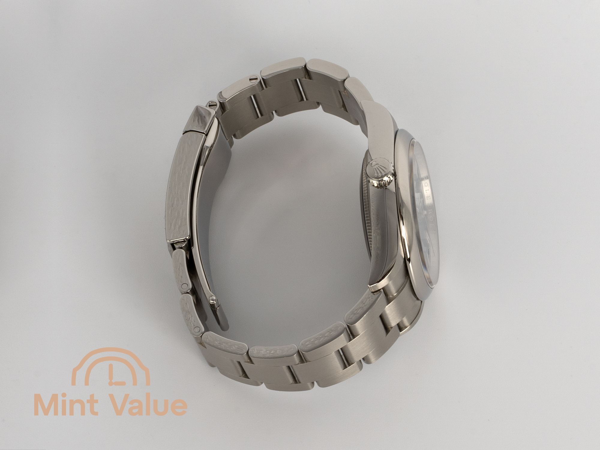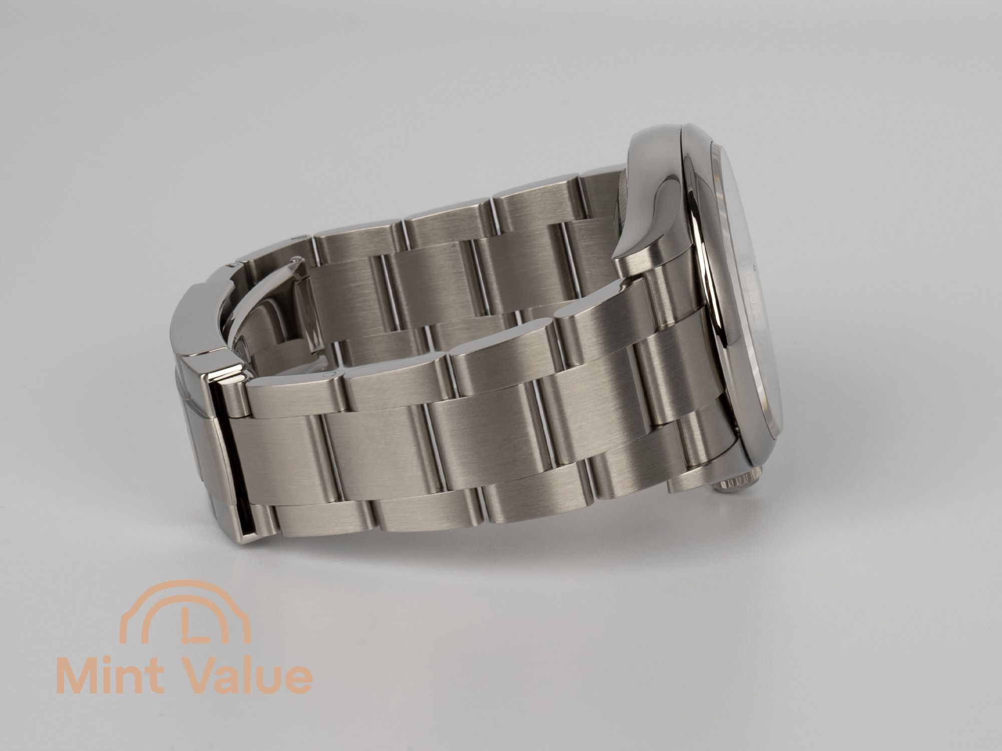 Fitted with calibre 3230, Rolex’s high-performance automatic movement featuring Parachrom hairspring, Paraflex shock absorbers, and Superlative Chronometer certification. The 36 mm OP case has become a modern staple, blending Rolex’s architectural strengths — durability, waterproofness, craftsmanship.
