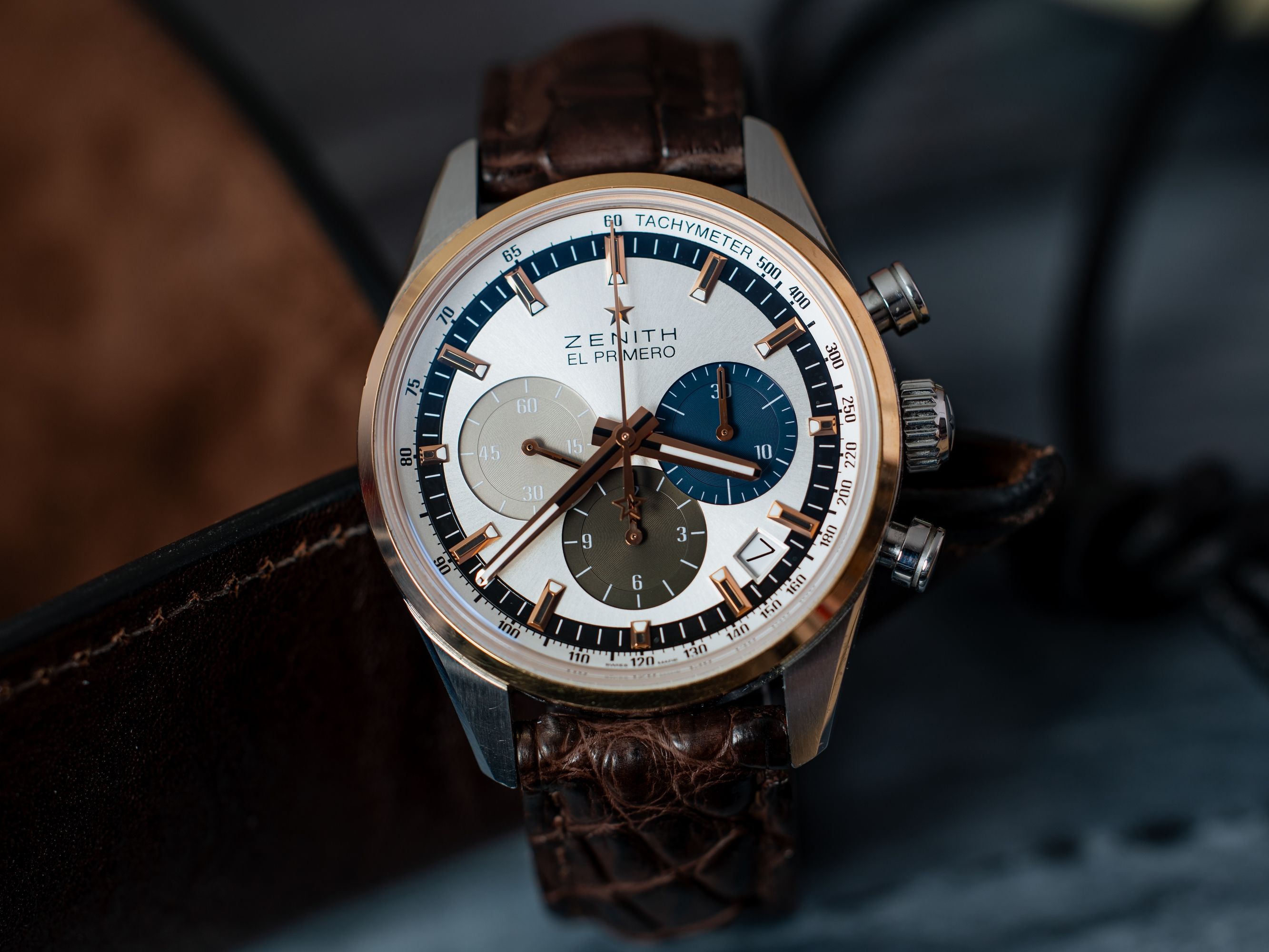 A stunning Zenith El Primero in the perfect 38 mm size, presented here in a very rare and desirable bicolor configuration.