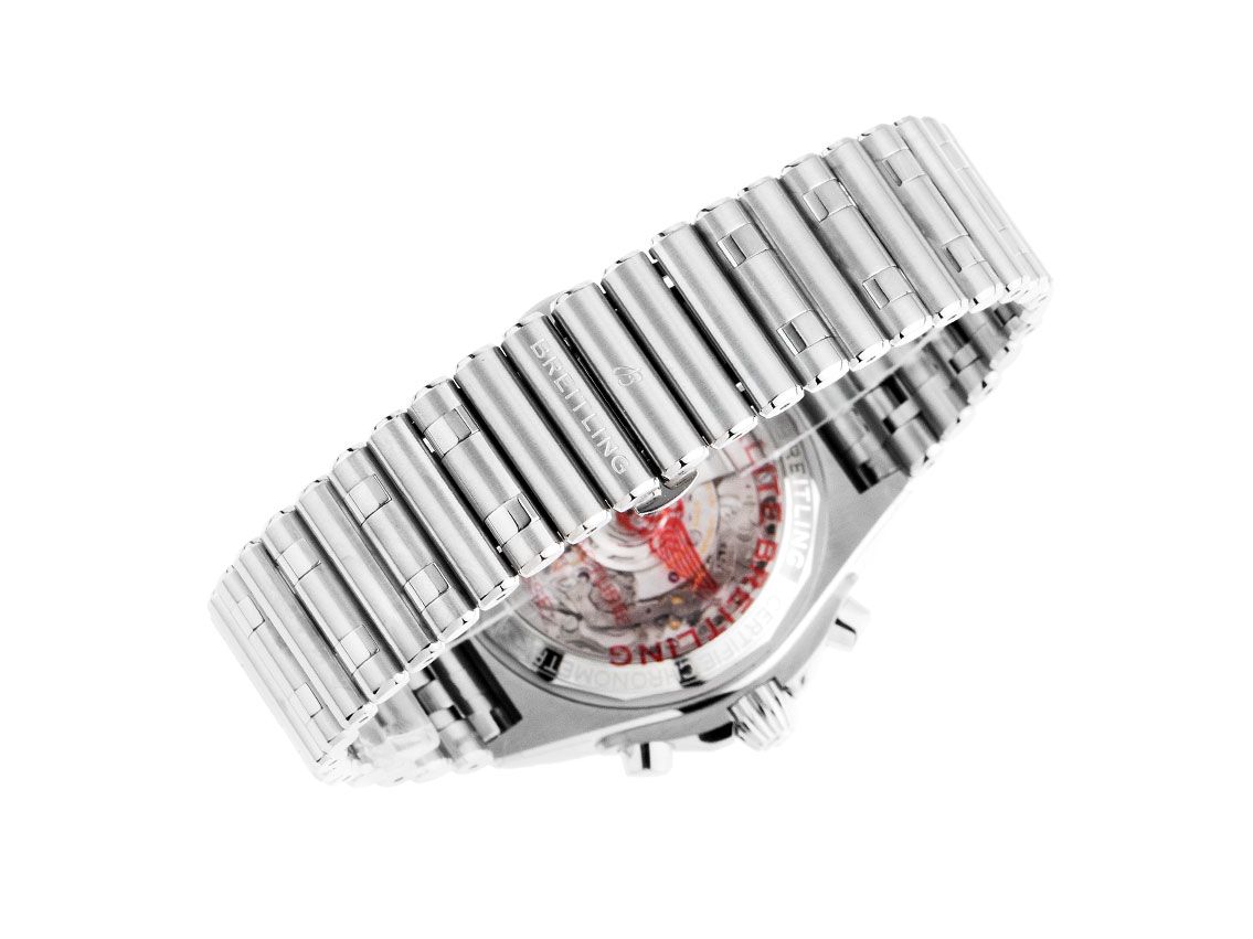 Gehäuse Edelstahl poliert und satiniert, Gehäusedurchmesser ohne Krone 42mm, Gehäusehöhe 15,1mm. Lünette Edelstahl mit 60-Minuten Skala und Leuchtpunkt, einseitig drehbar mit Sperre. Rouleaux Armband Edelstahl poliert und satiniert, verdeckte Doppelsicherheitsfaltschließe Edelstahl mit Hersteller-Logo. Zifferblatt grün mit aufgesetzten Edelstahl Leuchtindexen und polierten Edelstahl Leuchtzeigern. Uhrwerk Automatik, Chronograph, Chronometer mit Zeugnis, Breitling Manufakturkaliber B01 mit 47 Edelsteinen, Gangreserve ca. 70 Stunden. Anzeige von Stunde und Minute über Zeiger aus der Mitte, kleine Sekunde mit Sekundenstopp zur sekundengenauen Einstellung der Uhrzeit bei 9 Uhr, Datumsanzeige mit Schnellverstellung bei 6 Uhr. Saphirglas kratzfest, doppelseitig entspiegelt und bombiert. Zwiebelkrone verschraubbar mit Flankenschutz und Hersteller-Logo. Boden Edelstahl verschraubt und graviert mit Saphirglas Sichtfenster. Gewicht der Uhr inklusive Armband 196g, Länge des Armbandes inkl. Gehäuse 200mm. Wasserdicht bis 20 ATM. Referenznummer: AB0134101L1A1, ID: ST1160122500723H-8900, Artikelnummer: 10000070710. Original Breitling Box mit Garantie Papiere von 07/2023 sowie Beschreibung und Lünettenschutz, Full Set. Ungetragen. Lieferzeit sofort.