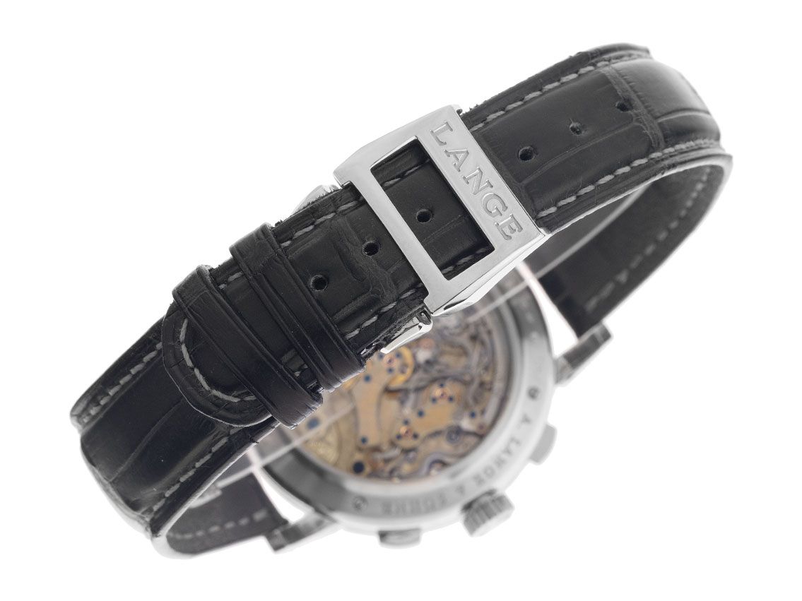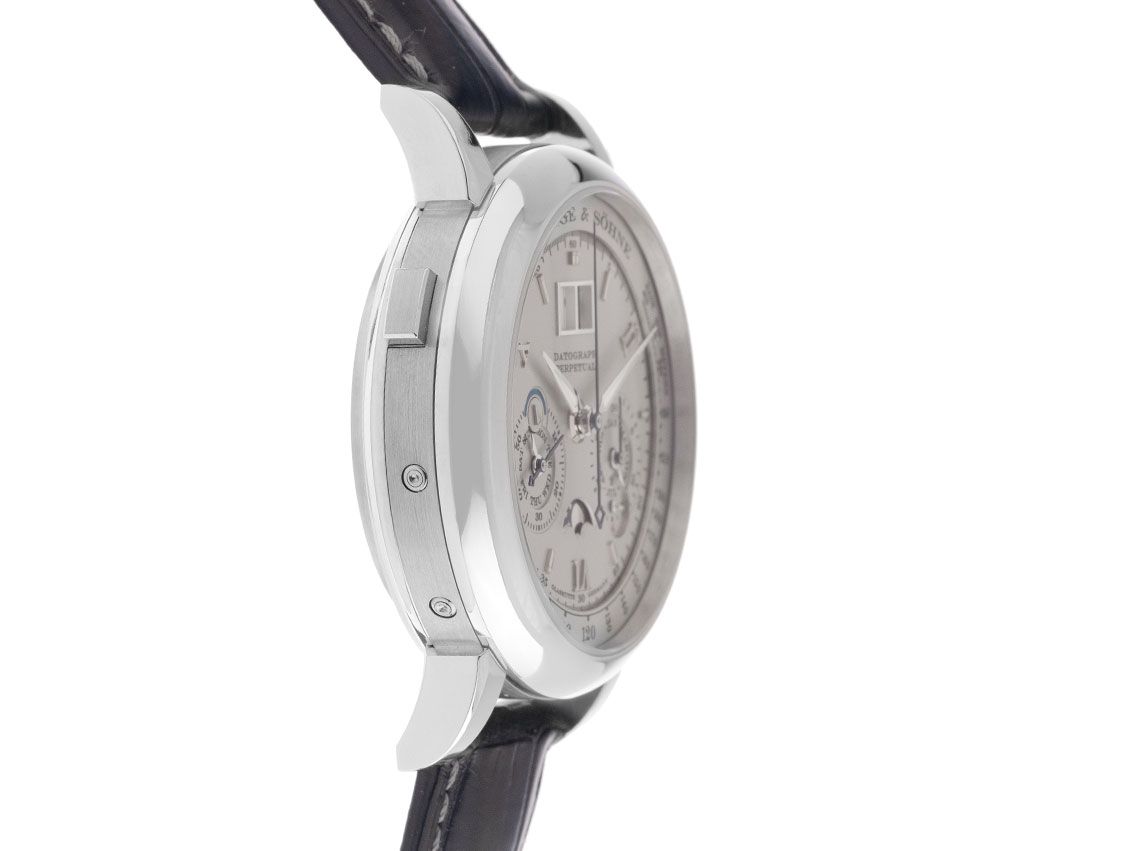 A. Lange & Söhne Datograph Perpetual 950 Platin Handaufzug Chronograph Mondphase Armband Leder Faltschließe