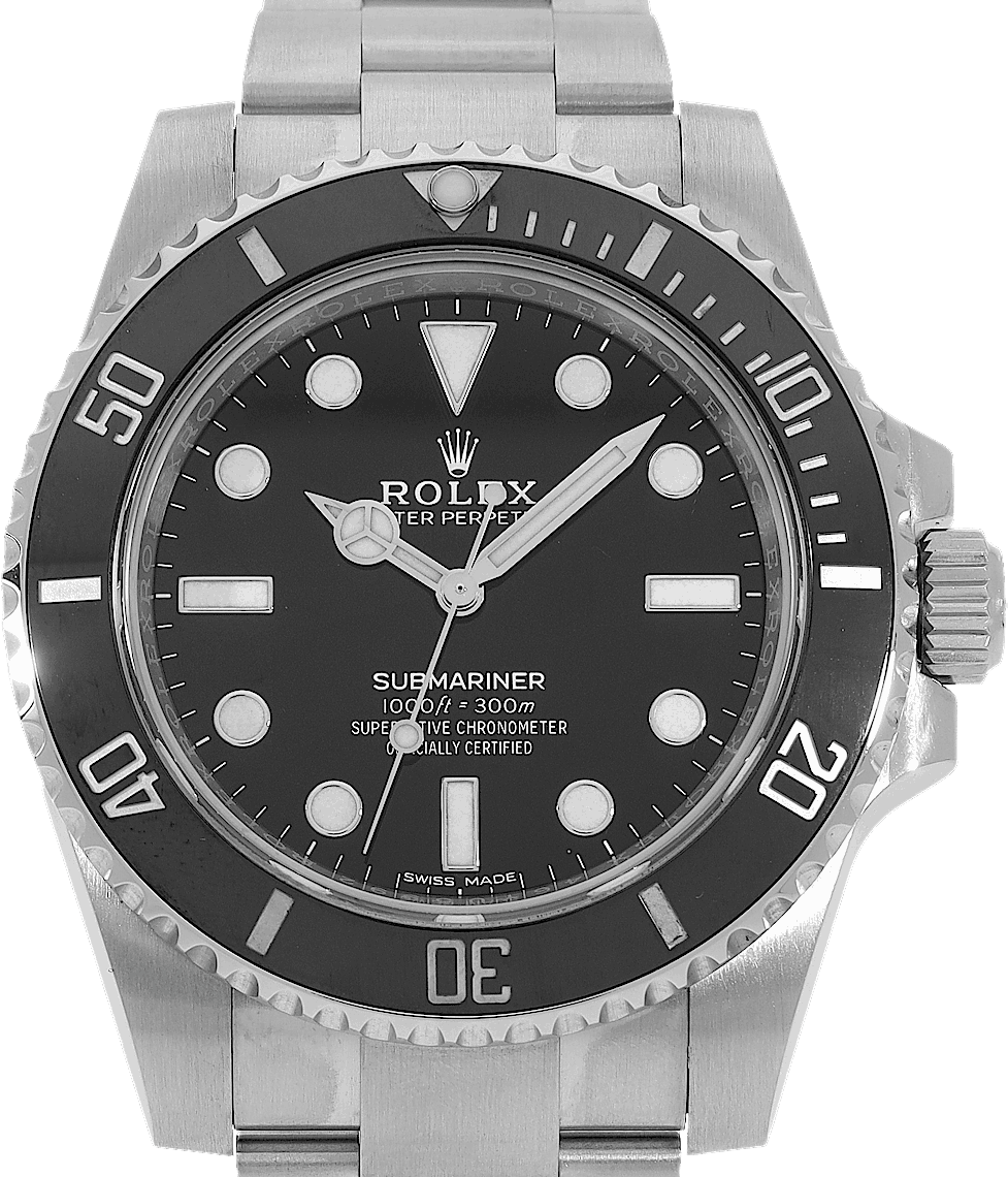 Rolex Submariner No Date, Reference: 114060, Gender: Male, Size: 41mm, Dial color: Black, Strap material: Stainless Steel, Movement: Automatic, Year: 2018, Condition: Previously worn, minor to no signs of usage. The movement is flawless and the case has been cleaned. watch tested ensure full functionality. An inspection by our certified watchmakers guarantees its authenticity., Documents: Original papers, CHRONEXT Certificate