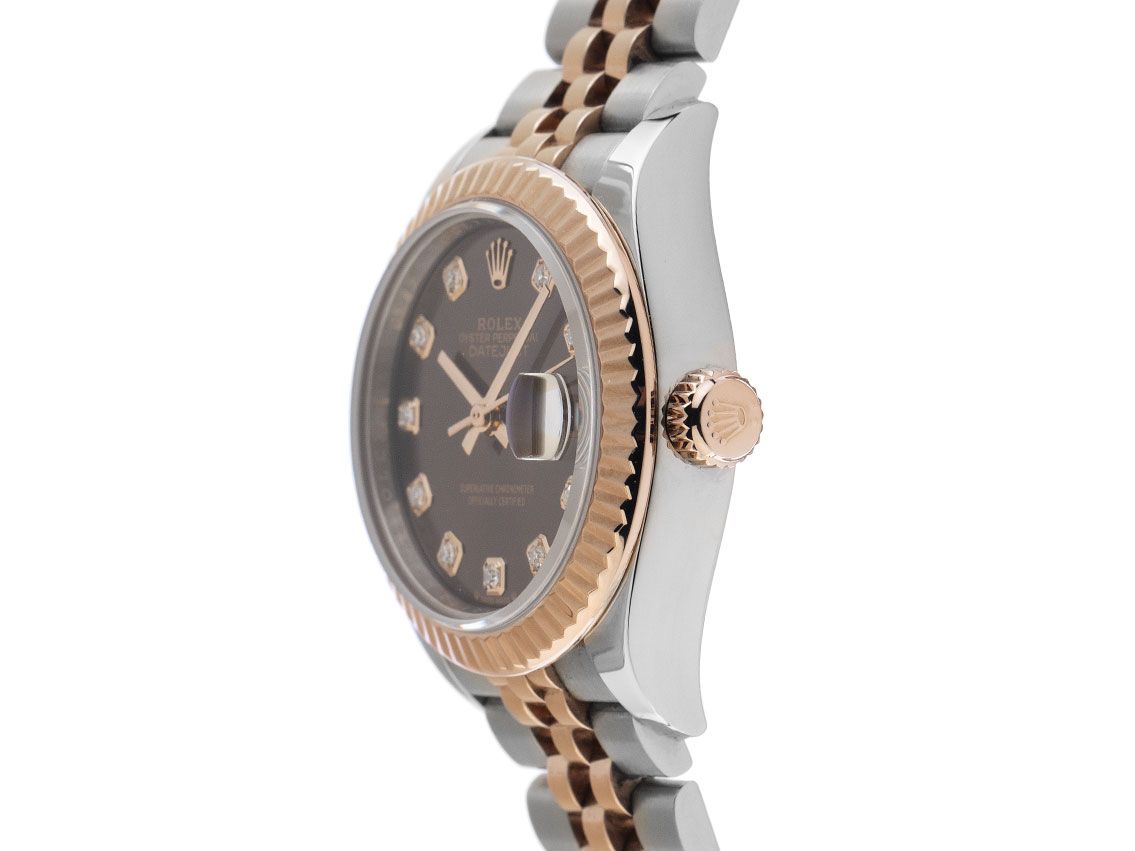 Gehäuse Edelstahl poliert und satiniert, Gehäusedurchmesser ohne Krone 28mm, Gehäusehöhe 11,0mm. Lünette 18kt Roségold Everose geriffelt und poliert. Armband Jubilé Edelstahl / 18kt Roségold Everose poliert und satiniert, verdeckte Faltschließe mit Hersteller-Logo. Zifferblatt schokobraun mit aufgesetzten in Roségold gefasten Diamantindexen und roségoldenen Zeigern. Uhrwerk Automatik, Chronometer mit Zeugnis, Rolex Manufakturkaliber 2236 mit 31 Edelsteinen, Gangreserve ca. 55 Stunden. Anzeige von Stunde, Minute und Sekunde über Zeiger aus der Mitte mit Sekundenstopp zur sekundengenauen Einstellung der Uhrzeit, Datumsanzeige mit Schnellverstellung unter Glaslupe bei 3 Uhr. Saphirglas kratzfest. Krone verschraubbar mit Hersteller-Logo. Boden Edelstahl verschraubt. Gewicht der Uhr inklusive Armband 76g, Länge des Armbandes inklusive Gehäuse 155mm. Referenznummer: 279171, ID: P0378280000125H-17500/13950, Artikelnummer: 10000078191. Original Rolex Box mit Umkarton und Garantie Papiere von September 2021, neue Rolex Garantie Karte ohne Ländercode sowie Beschreibung, Ledermäppchen, Rolex Chronometer-Siegel und Tag sowie Watchregister Auszug von Januar 2025, The Watch Register Zertifikat / ohne Eintrag (Internationale Datenbank für verlorene oder gestohlene Uhren), Full Set. Ungetragen. Lieferzeit sofort.