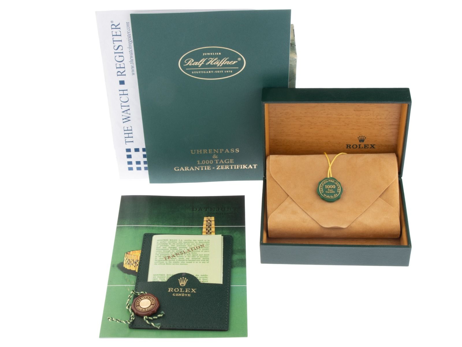Inklusive certified pre owned Siegel / Uhrenpass mit einem Farbbild, der genauen Beschreibung sowie dem Wiederbeschaffungswert der Uhr über 6900,-€ und 1000 Tage Garantie ab Kaufdatum.