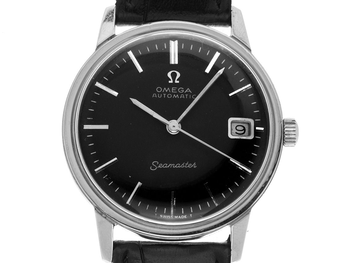 Gehäuse Edelstahl poliert, Gehäusedurchmesser ohne Krone 35mm, Gehäusehöhe 10,6mm. Armband Leder schwarz mit Ziernaht, Anstoßbreite 18mm, Stiftschließe Edelstahl. Zifferblatt schwarz mit aufgesetzten Indexen und polierten Zeigern. Uhrwerk Automatik, Omega Kaliber 565 mit 24 Edelsteinen. Anzeige von Stunde, Minute und Sekunde über Zeiger aus der Mitte, Datumsanzeige mit Schnellverstellung bei 3 Uhr. Plexiglas gewölbt. Krone mit Hersteller-Logo. Boden Edelstahl verschraubt und graviert. Gewicht der Uhr inklusive Armband 41g. Referenznummer: 166.002, Baujahr: 1968, ID: P181230001025H-4100, Artikelnummer: 10000082901. Mit Gangkontrolle und kompletter äußerlicher Aufarbeitung von November 2025. Original Omega Box und Watchregister Auszug von Oktober 2025, The Watch Register Zertifikat / ohne Eintrag (Internationale Datenbank für verlorene oder gestohlene Uhren). Superschnäppchen, sehr seltenes Sammlerstück. Sehr guter Zustand. Lieferzeit sofort.