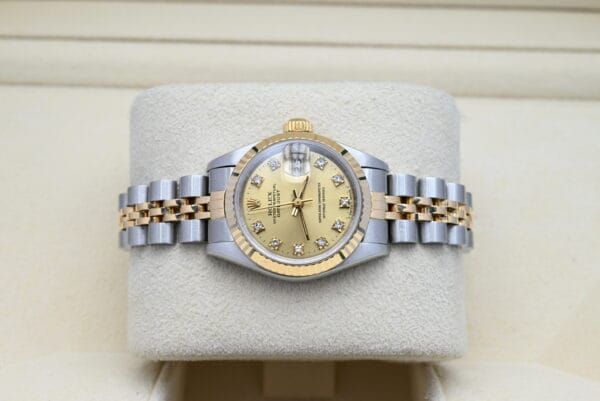 Rolex Lady-Datejust Ref. 69173 with the champagne diamond dial from 1989 in excellent condition, comes complete with the full set.All of our watches have been thoroughly checked by our own watchmaker and serviced when needed.