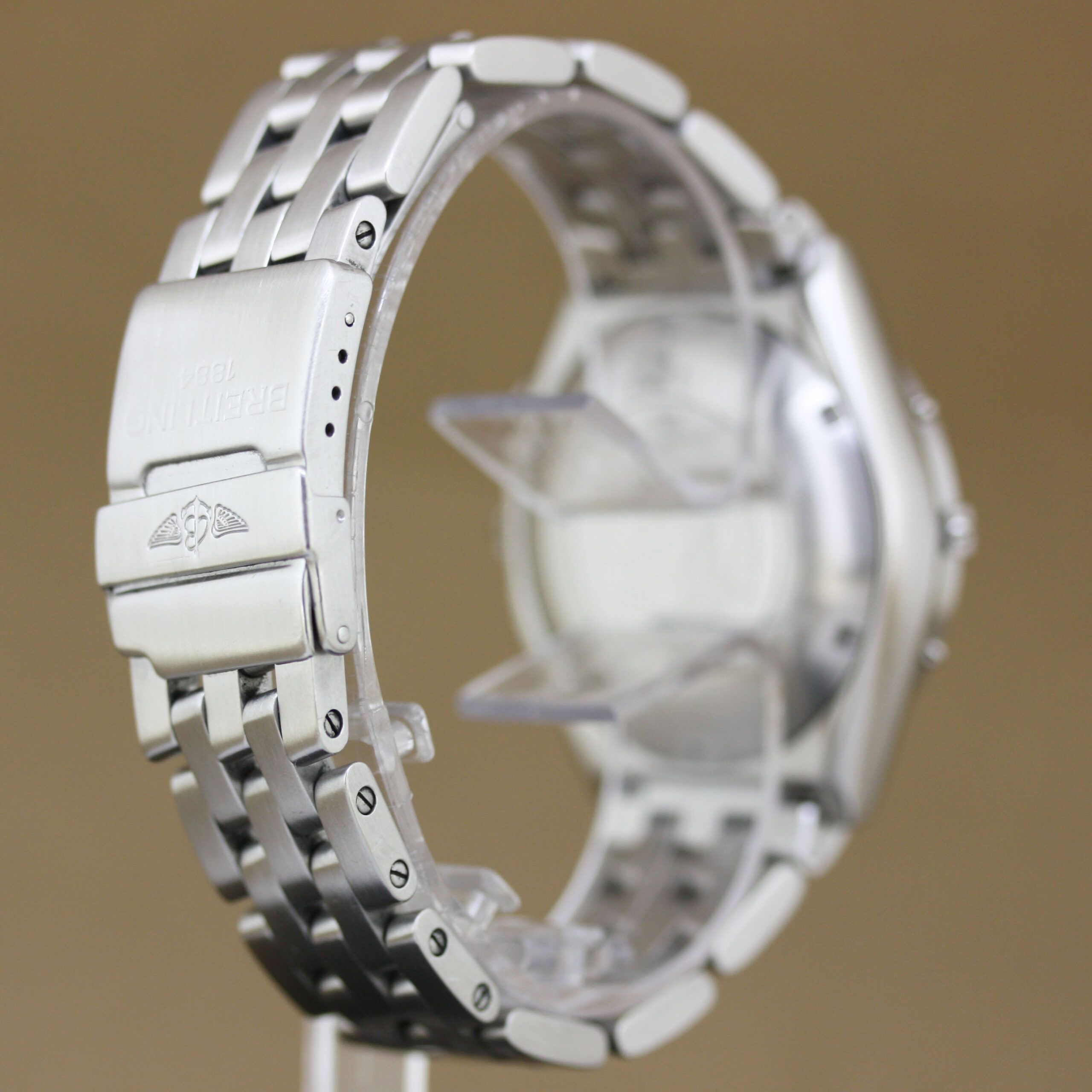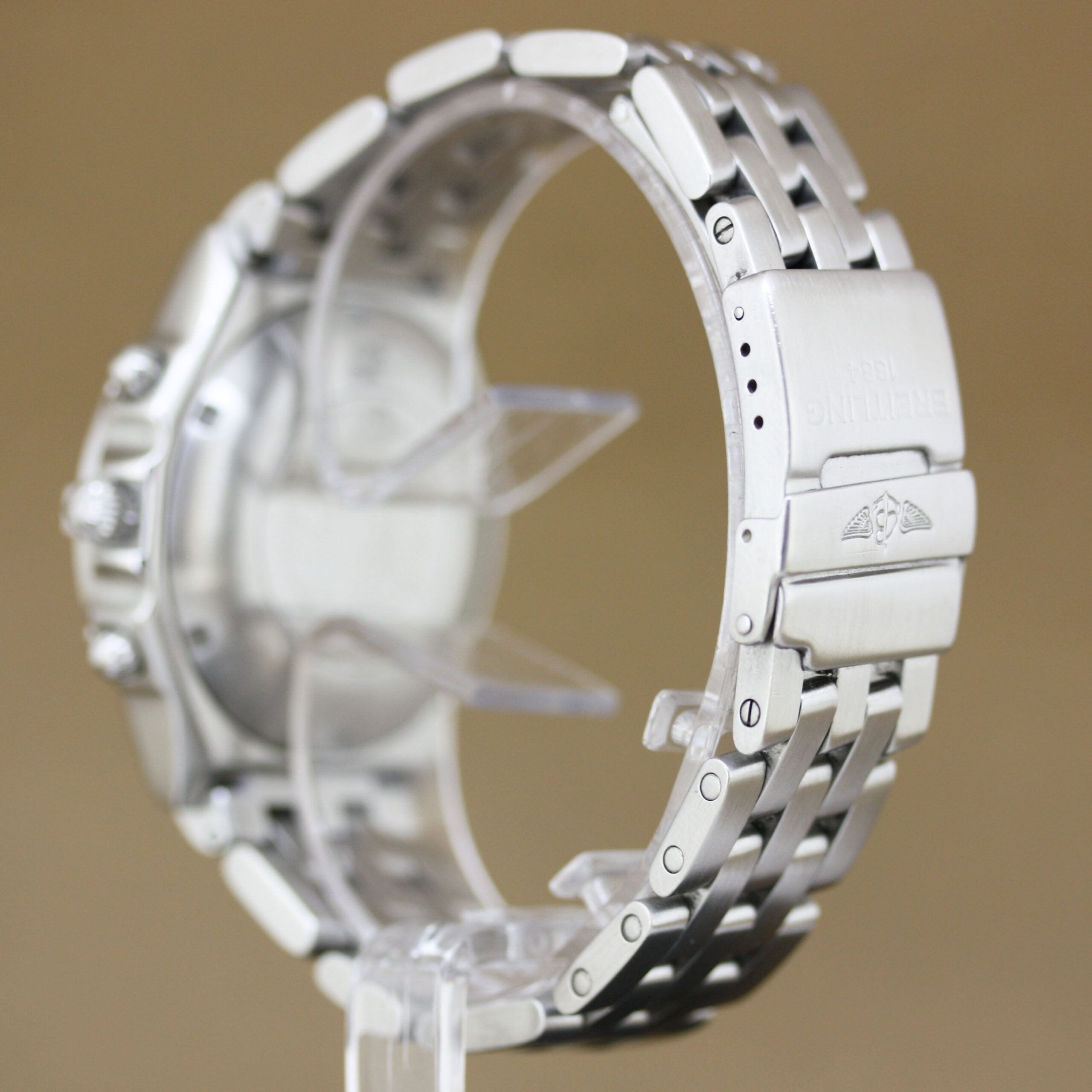 Breitling Chronomat Blue Impulse Limited Edition in very good condition. ref:A13050.1 The watch has a steel case and a silver Blue Impulse dial. The Breitling Chronomat has a steel strap with folding clasp and has an automatic movement with date and chronograph function. The watch comes with box (Breitling travel case), certificate of authenticity & appraisal report.
