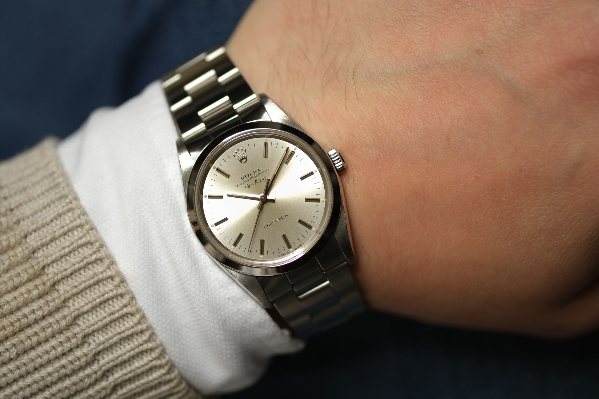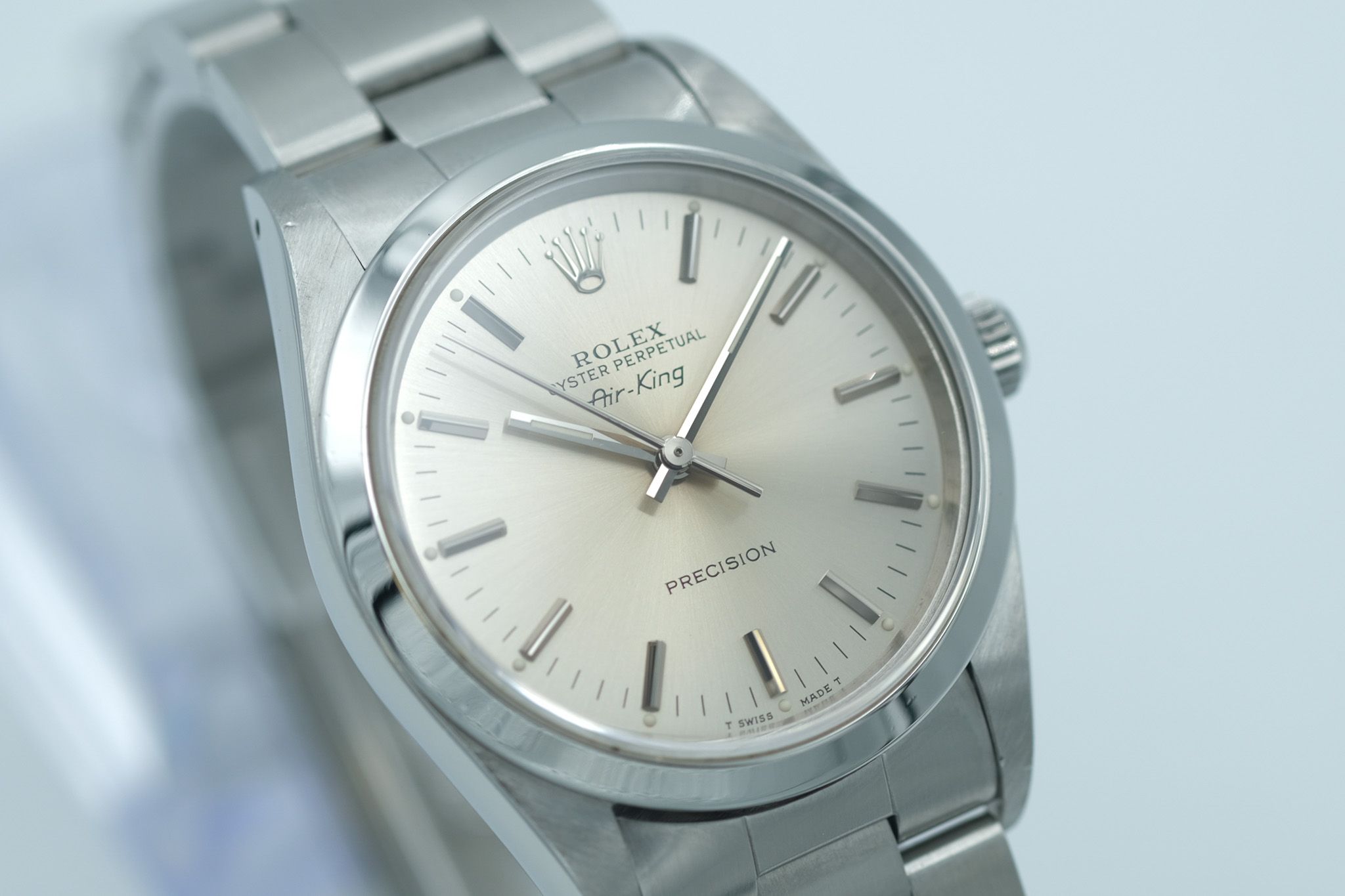 Beautiful Air-King Reference 14000 with silver sunburst dial and light vanilla-colored patina.