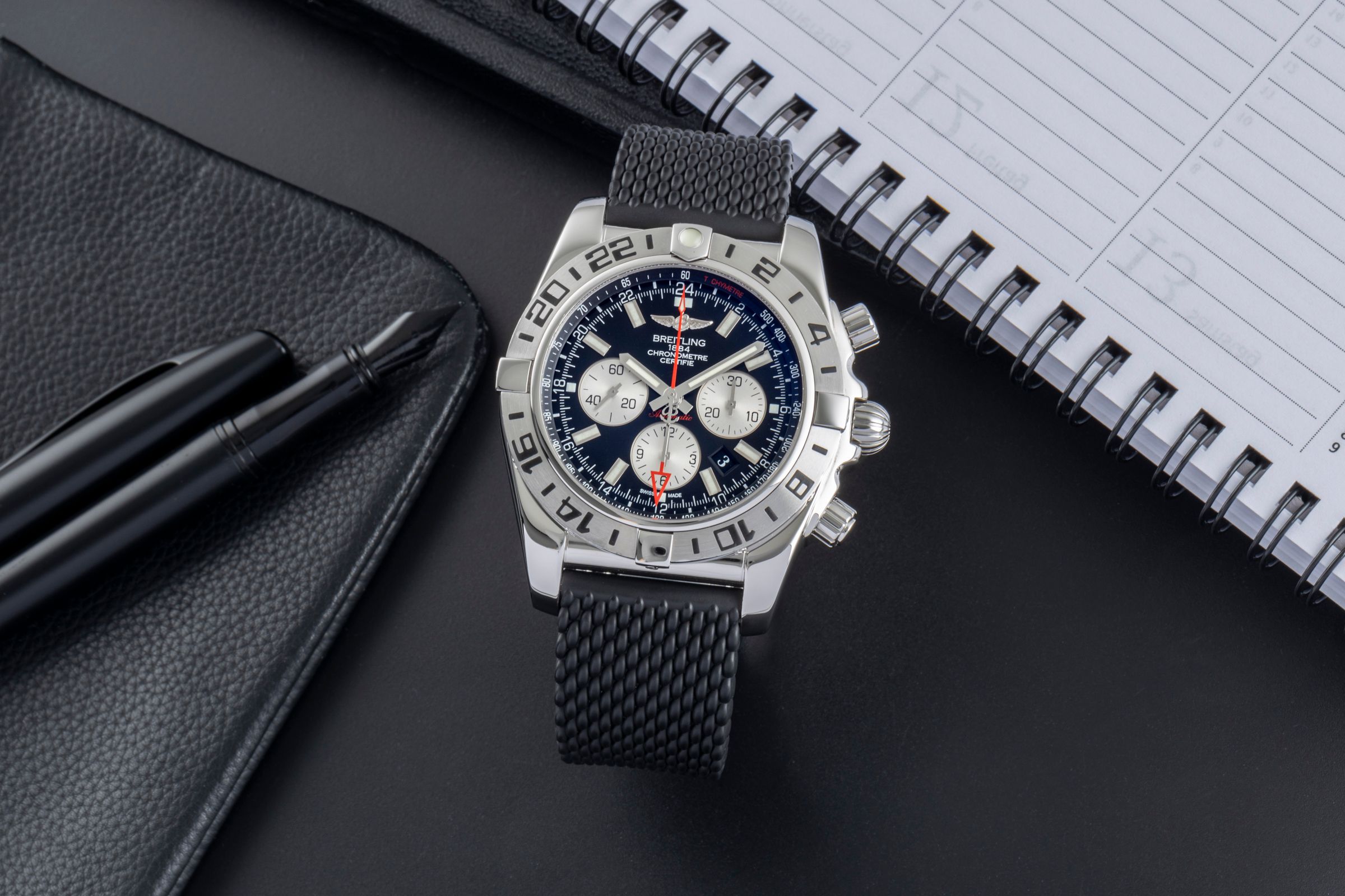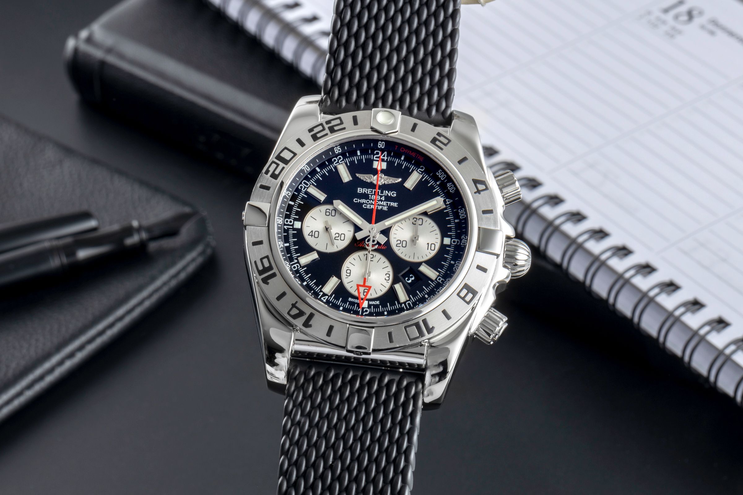 Alternative title: Breitling AB0413B9/BD17 Chronomat Gmt; Breitling Chronomat 47 GMT Chronograph Stahl Automatik Ref. AB0413B9/BD17 B&P [2505954]