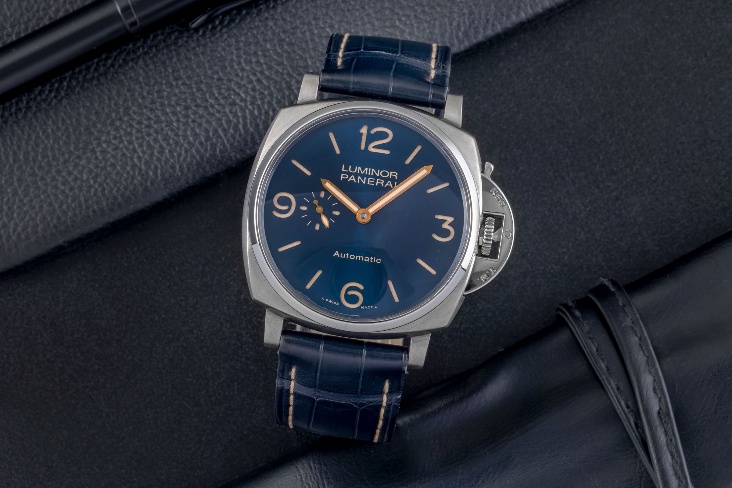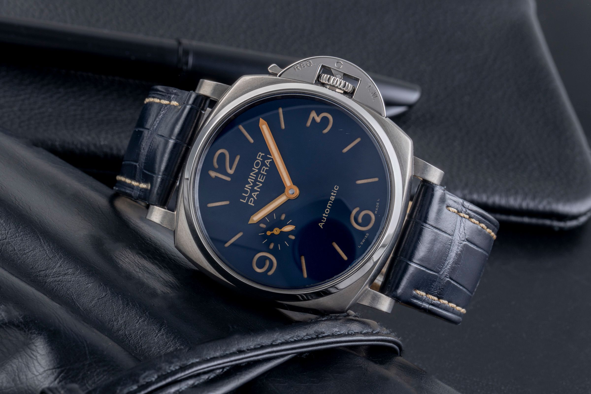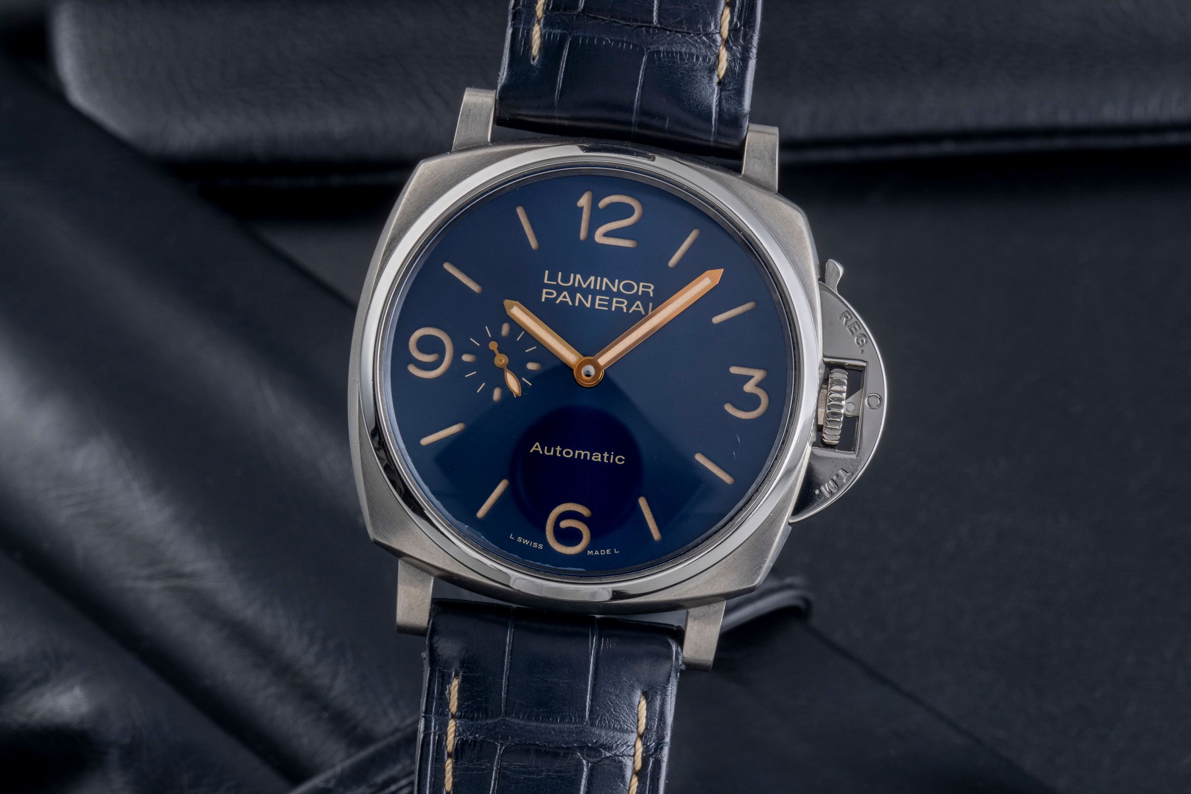 Alternative title: Panerai PAM00729 Luminor Due 45 3 Days Automatic Titanio / Blue; Panerai Luminor Titan Automatik Herrenuhr Ref. PAM00729 Box & Papiere 2018 [2506353]