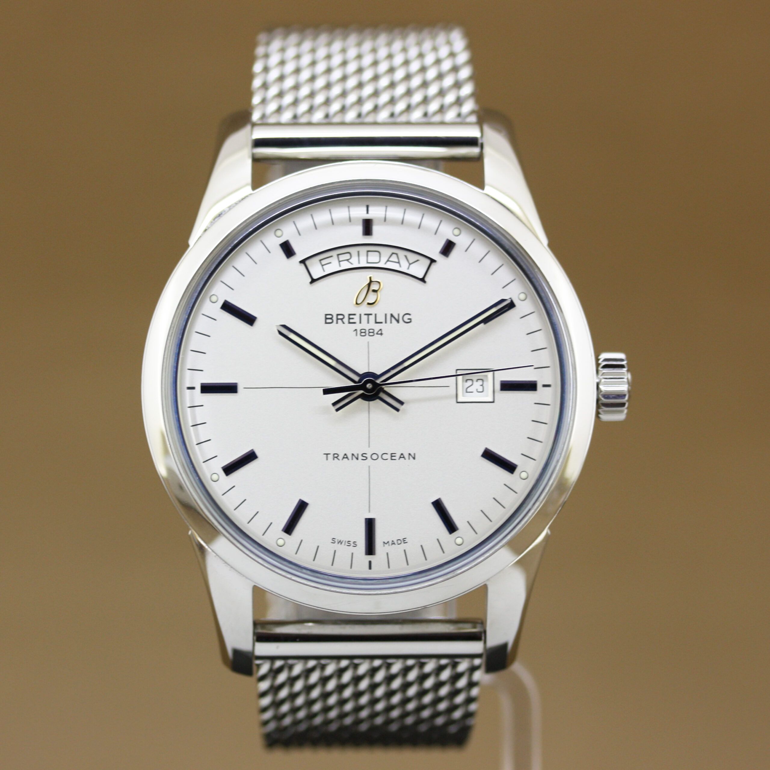 The Breitling Ocean Classic Mesh Bracelet with folding clasp enhances the elegant, vintage-inspired character of the Transocean series.